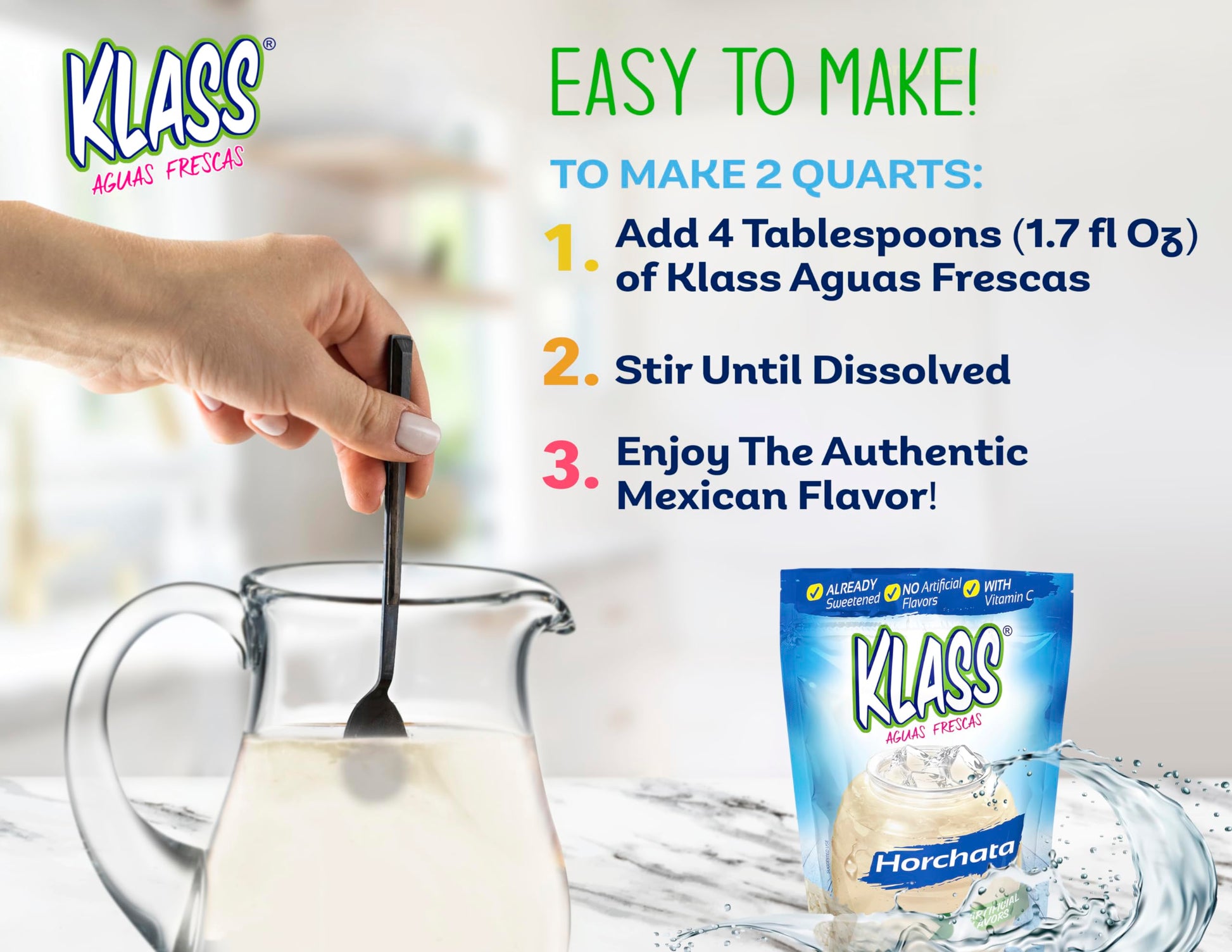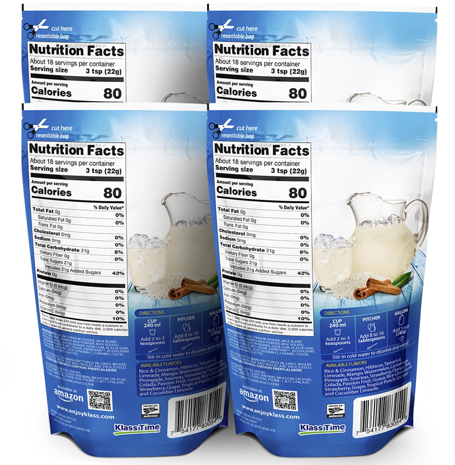 Klass Aguas Frescas | Drink Mix | Horchata | Flavors From Natural Sources, No Artificial Flavors, With Vitamin C (Makes 7 To 9 Quarts) 14.1 Oz Family Pack (4-Pack)