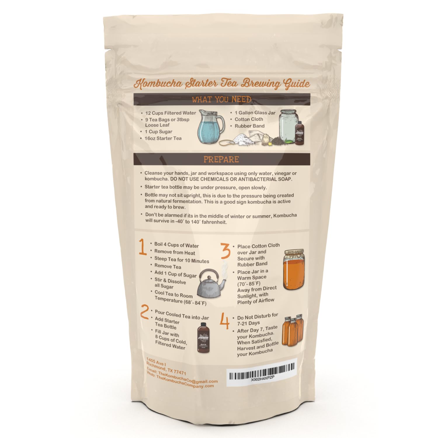 Q: What ingredients are in the Kombucha Starter Tea?A: The Kombucha Starter Tea is made with high-quality natural ingredients, including purified Texas rainwater. This ensures that you have a pure, probiotic-rich kombucha without any additives or artificial elements.