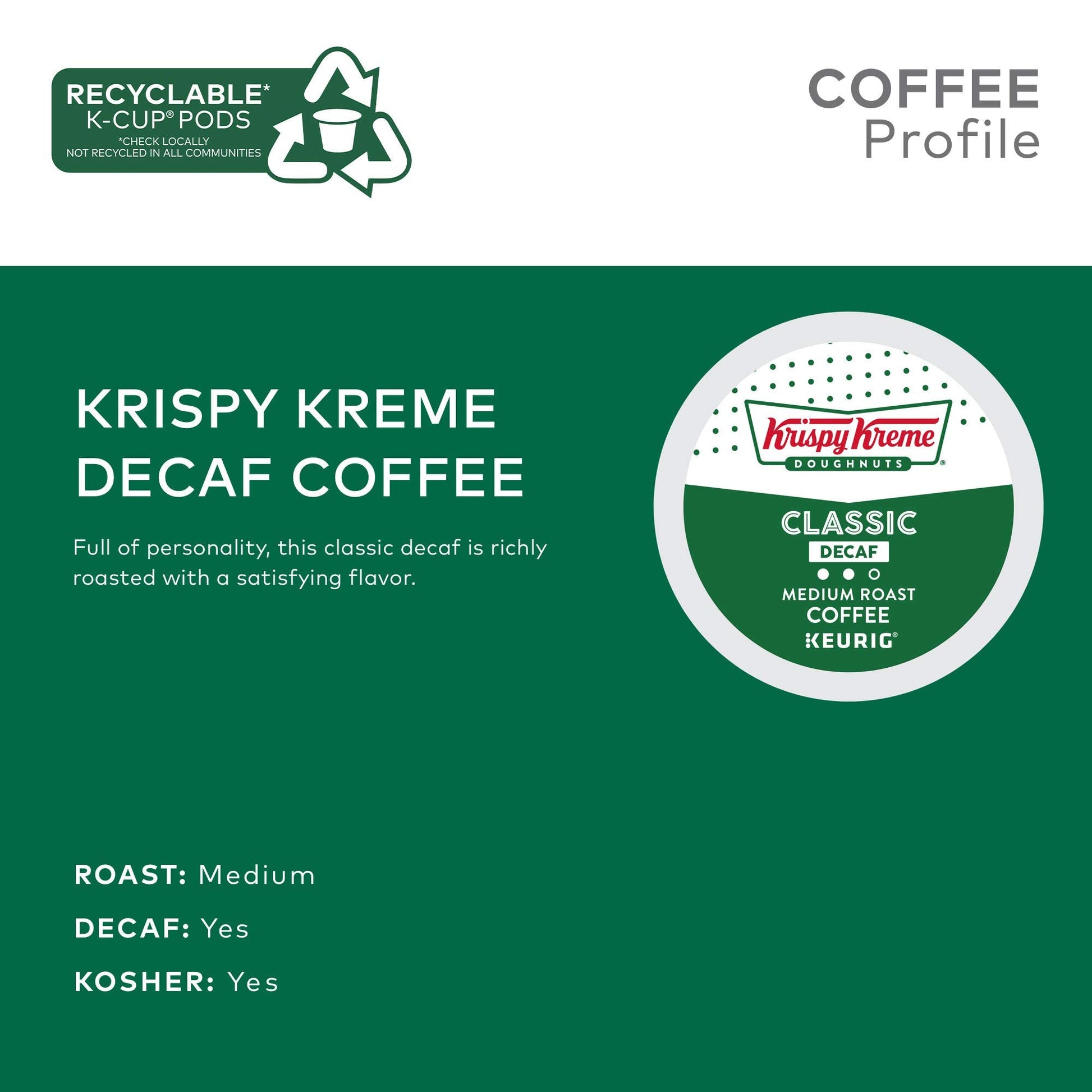 Q: Are these K-Cup pods compatible with all Keurig machines?A: Yes, Krispy Kreme Classic Decaf K-Cup Pods are compatible with all single-serve coffee makers that accept K-Cup pods, making it easy to brew a delicious cup of coffee.