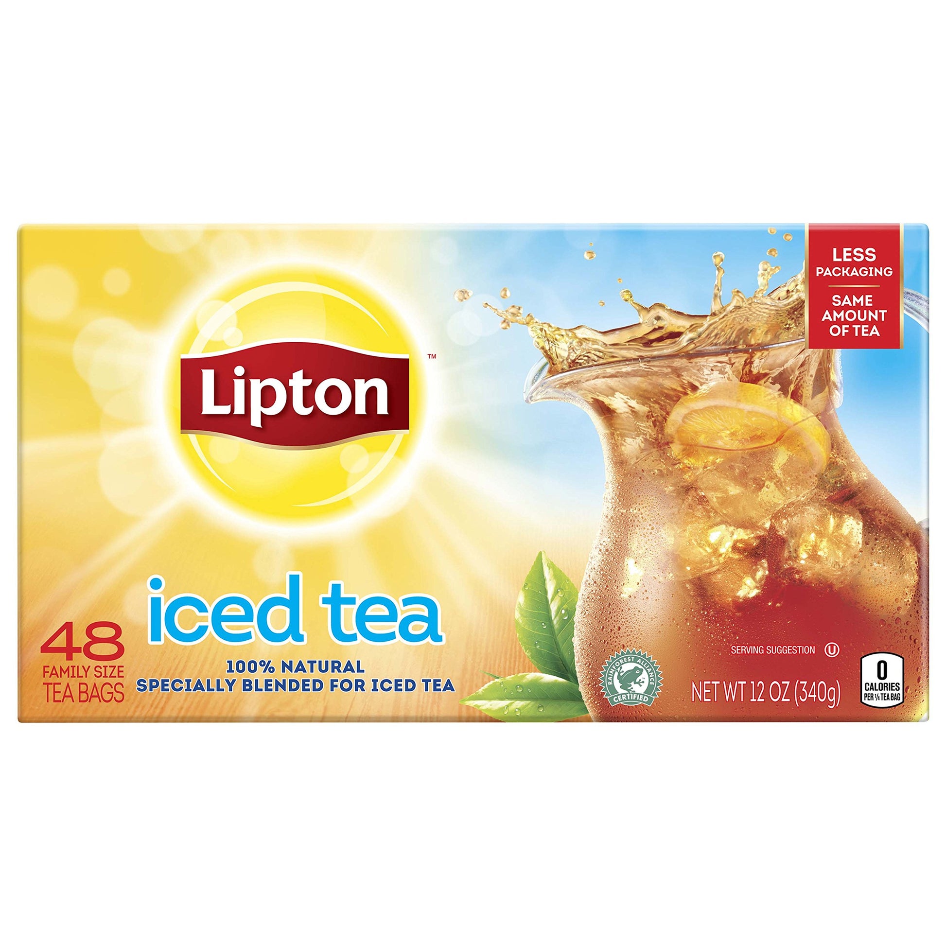 Easily brew crisp, refreshing Lipton black iced tea from these convenient family-size bags! Using real tea leaves specially blended for iced tea, our Master Blenders crafted this refreshingly delicious blend, where we pick tea leaves at the peak of flavor and blend them to capture as much natural tea taste and aroma as possible. Lipton iced tea is the perfect addition for any of your meals because is naturally tasty and refreshing. So don’t just default to the usual, enjoy the superior taste of fresh-brewed tea and choose Lipton Iced Tea. To prepare 1 gallon iced tea pitcher: simply brew two tea bags with 1 quart boiling water, brew 3 minutes, sweeten, add 3 quarts of fresh cold water and ice. Then sip and let great-tasting Lipton black iced tea brighten your day! To capture as much of the tea taste and aroma as possible, we have developed and innovative process where we press fresh, high-quality tea leaves to release their natural essence. We then use this essence on our blend. All our tea bags are 100% sustainably sourced, which translates into ensuring decent wages for tea farmers around the world together with access to quality housing, education and medical care. Your tea is their brighter future.