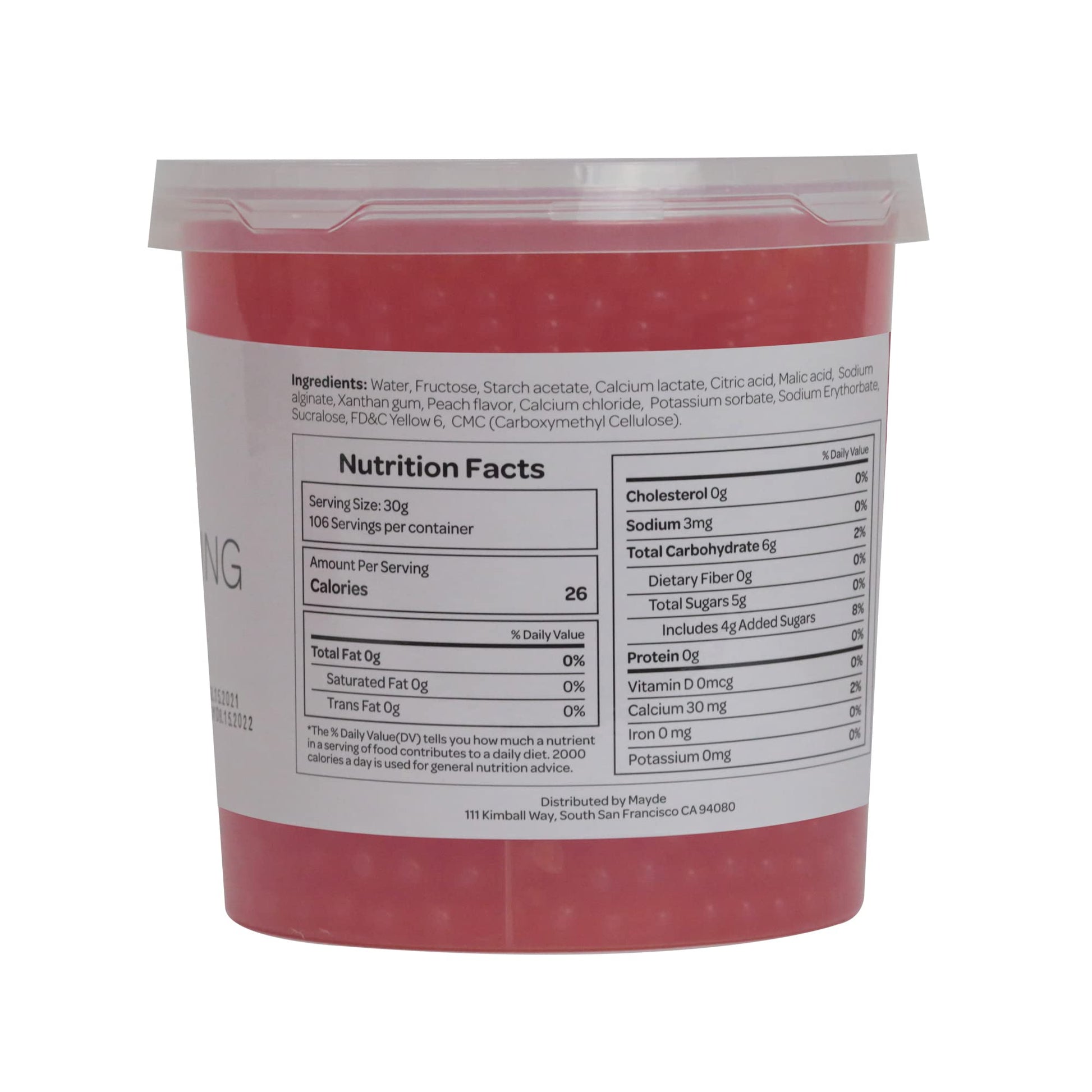 Mayde Popping Boba Bursts To Create A Wonderful Experience In Every Bite! Want To Turn Your Breakfast Into An Awesome Treat? Then Top Your Pancakes & Waffles With Soft, Juicy, & Ready To Eat Boba Pearls Filled With Natural Peach Flavor! Looking Forward To A Fun Night With Family & Friends? Add Popping Boba Pearls To Cocktails & Smoothies! With The Outer Layer Made Of Seaweed Extract, You Can Be Assured That Mayde Popping Boba Is Fat-Free & Cholesterol-Free, Making It Safe For The Whole Family.