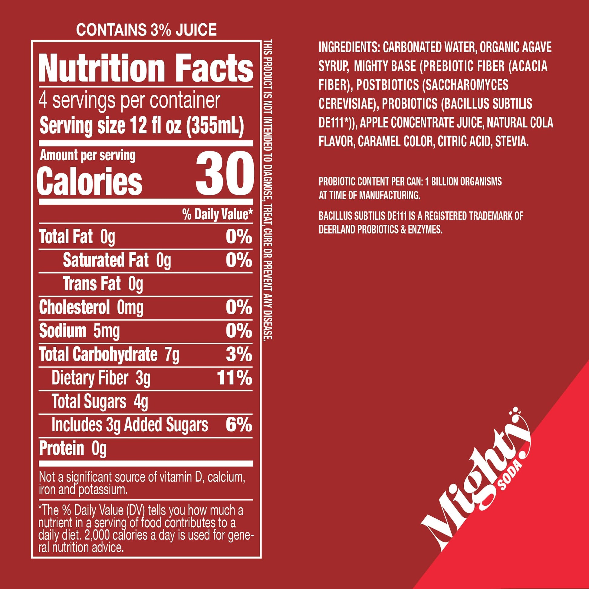 Q: Is Mighty Soda suitable for special diets?A: Yes, Mighty Soda is Non-GMO, Vegan, Gluten-Free, and Kosher, making it suitable for a variety of dietary preferences and lifestyles.
