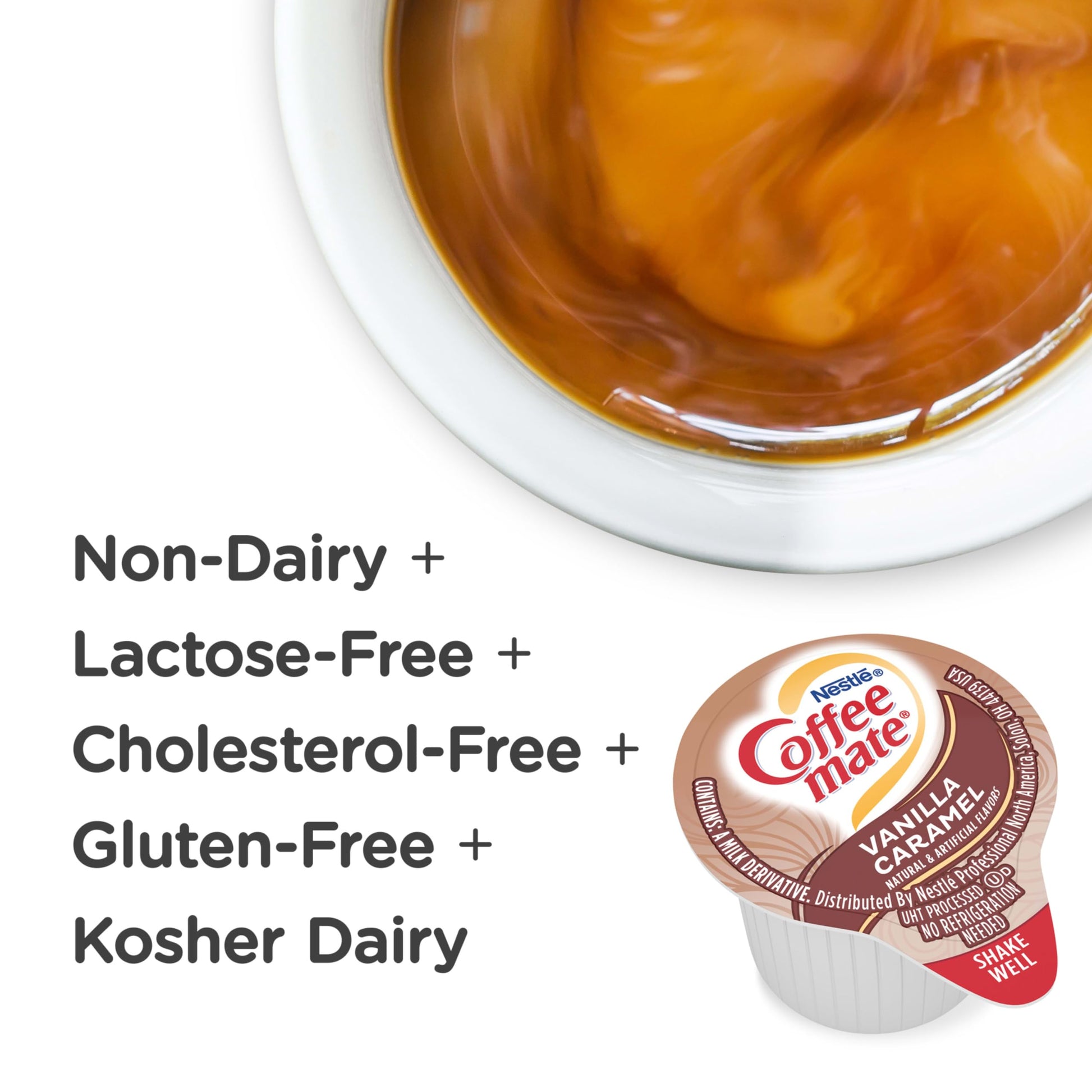 Q: Is the Coffee mate Vanilla Caramel Creamer suitable for special dietary needs?A: Yes, this liquid creamer is non-dairy, lactose-free, cholesterol-free, gluten-free, and kosher dairy, making it a suitable option for various dietary preferences.