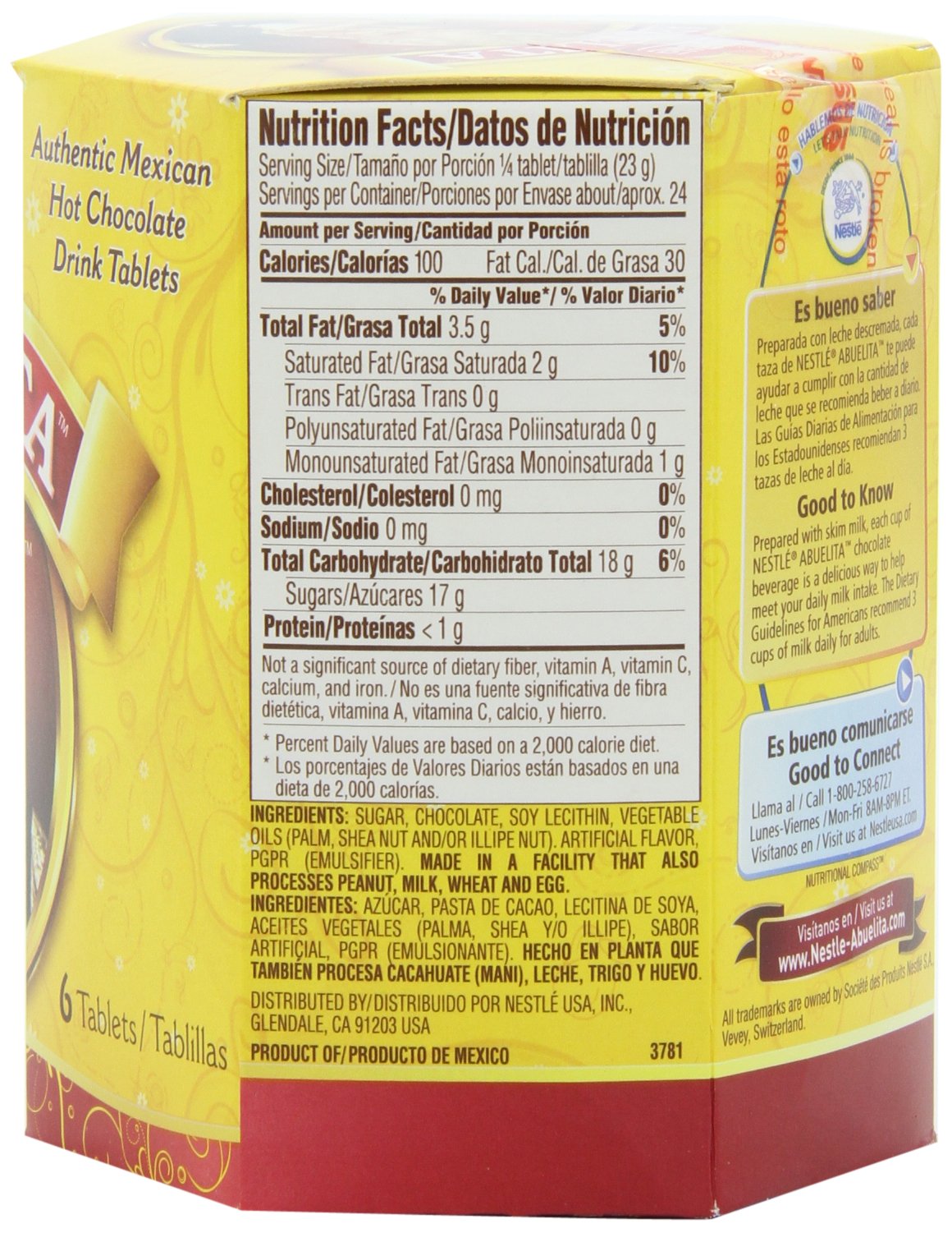 - Q: What is the packaging size of the Abuelita Drink Mix? A: Nestle Mexican Chocolate Abuelita Drink Mix comes in a 19-ounce package that contains 6 individual chocolate tablets, making it convenient for multiple servings.