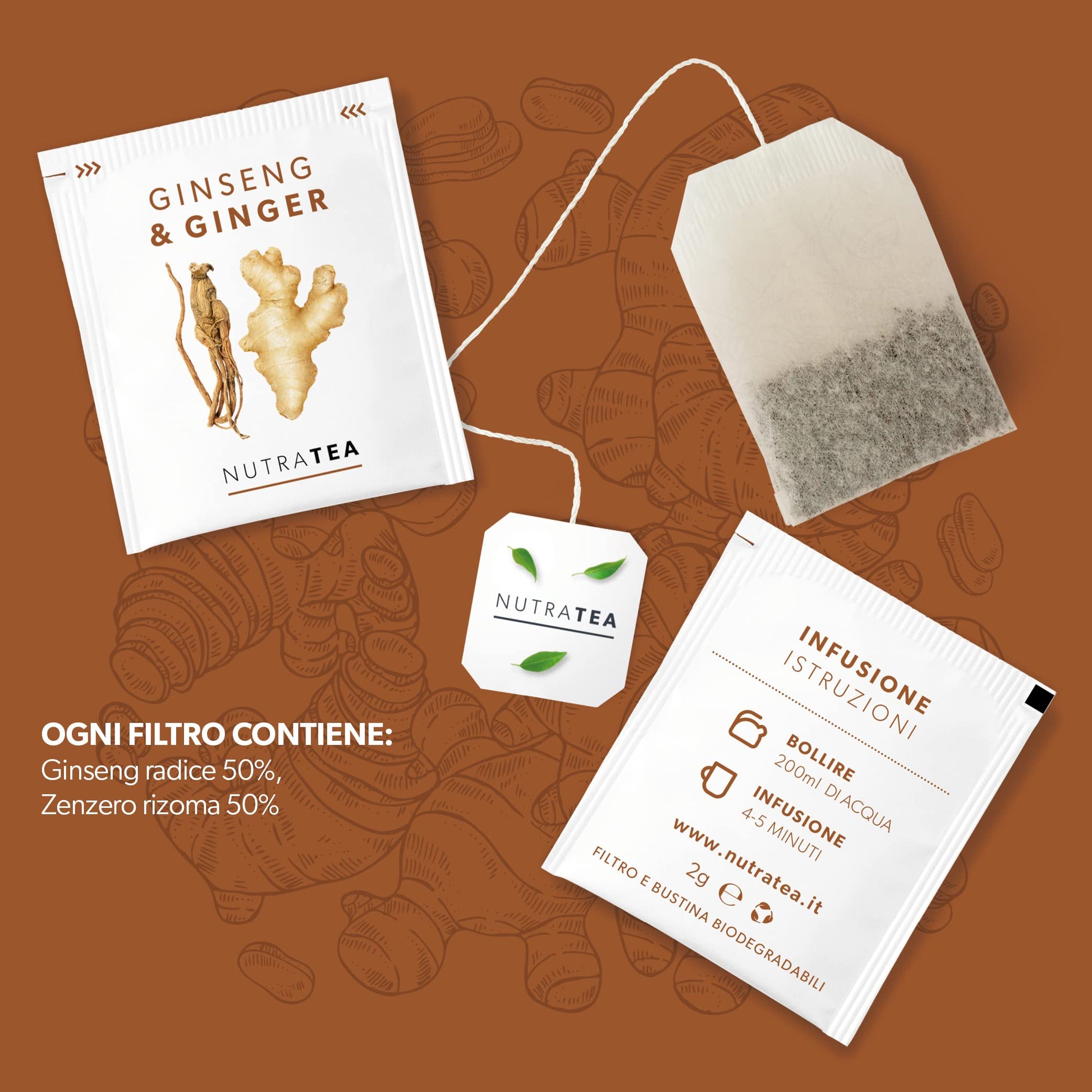 Q: What makes Nutra Tea - Ginger & Ginseng Tea different from other herbal teas?A: Nutra Tea - Ginger & Ginseng Tea contains a unique blend of 50% ginger and 50% ginseng, unlike many other brands that may include fillers or artificial ingredients. It provides a great tasting experience with authentic flavors.