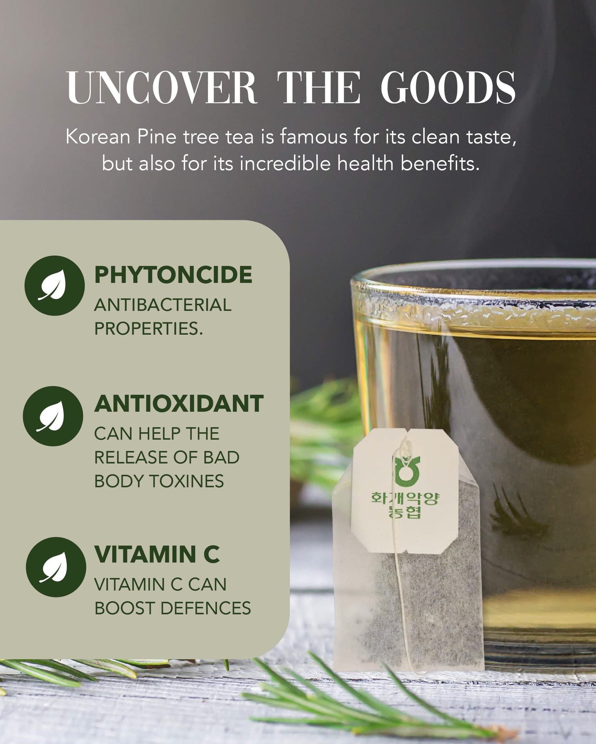 Q: Where does the organic pine needle tea come from?A: This organic seasonal pine needle tea is sourced from Hwagae Nonghyup, one of the oldest and most reputable tea brands in South Korea, ensuring high quality and authenticity.