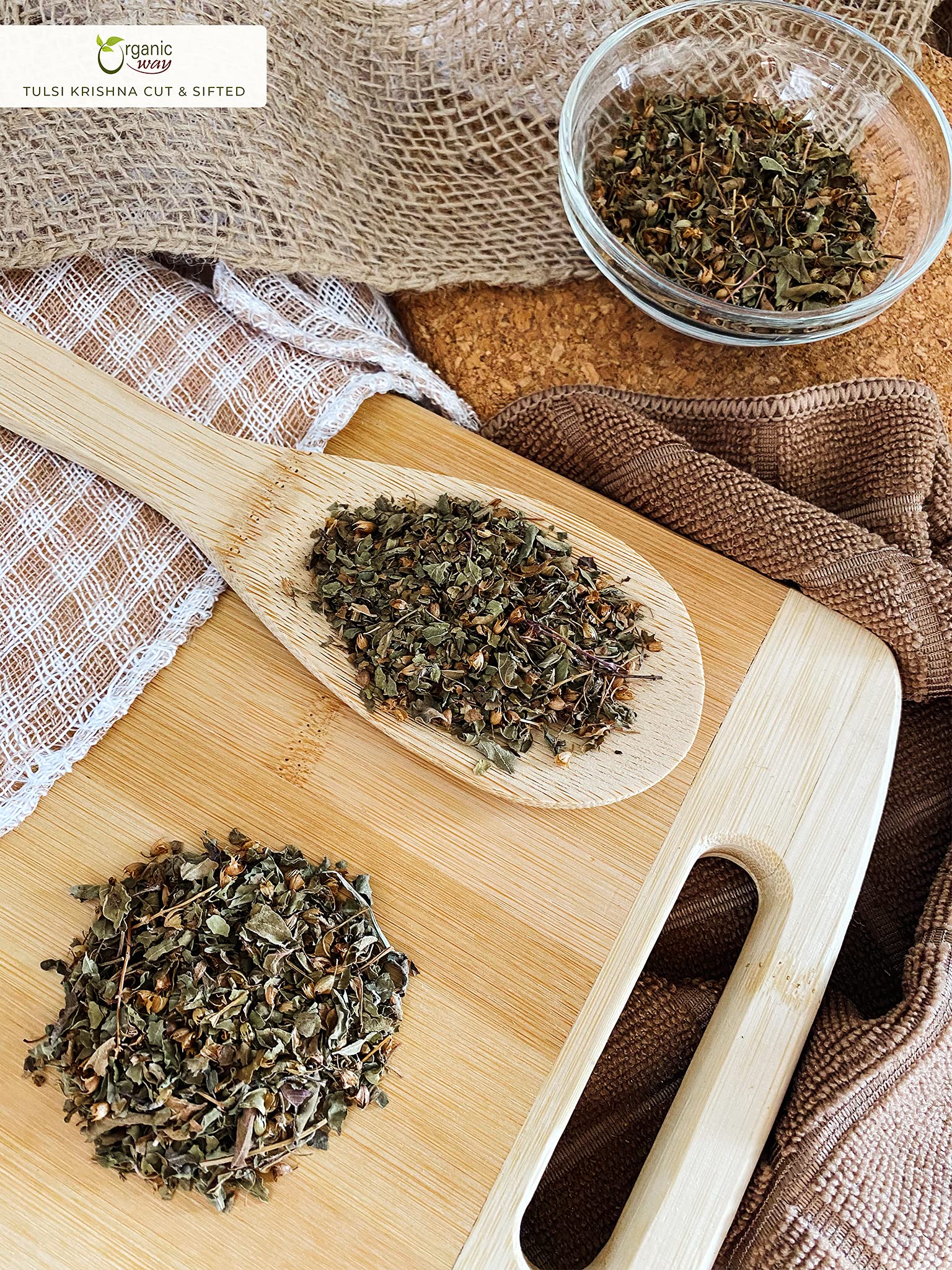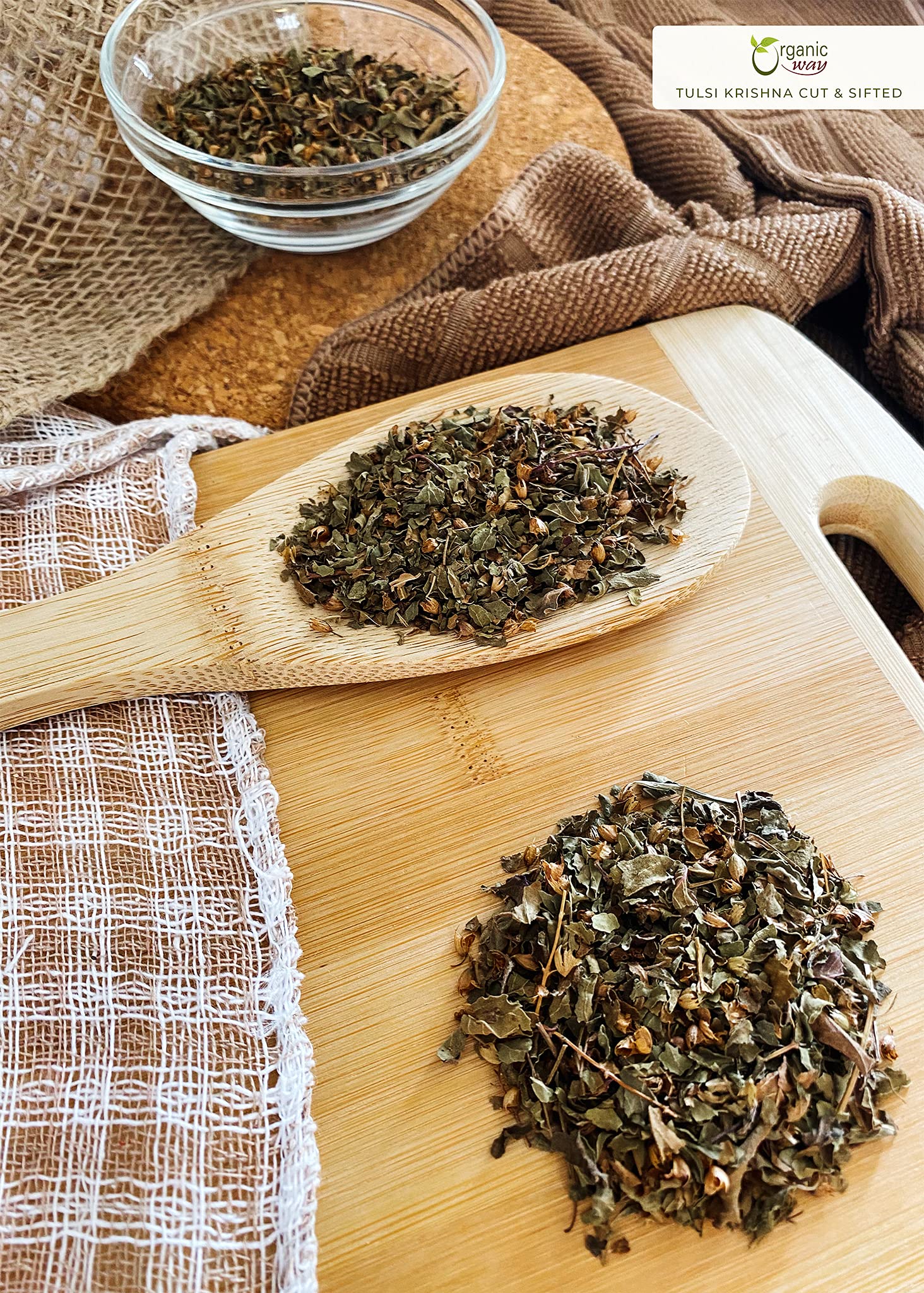 Order your 16-ounce pack of Organic Way Tulsi (Krishna) Cut & Sifted today and unlock the potential of this remarkable herb!