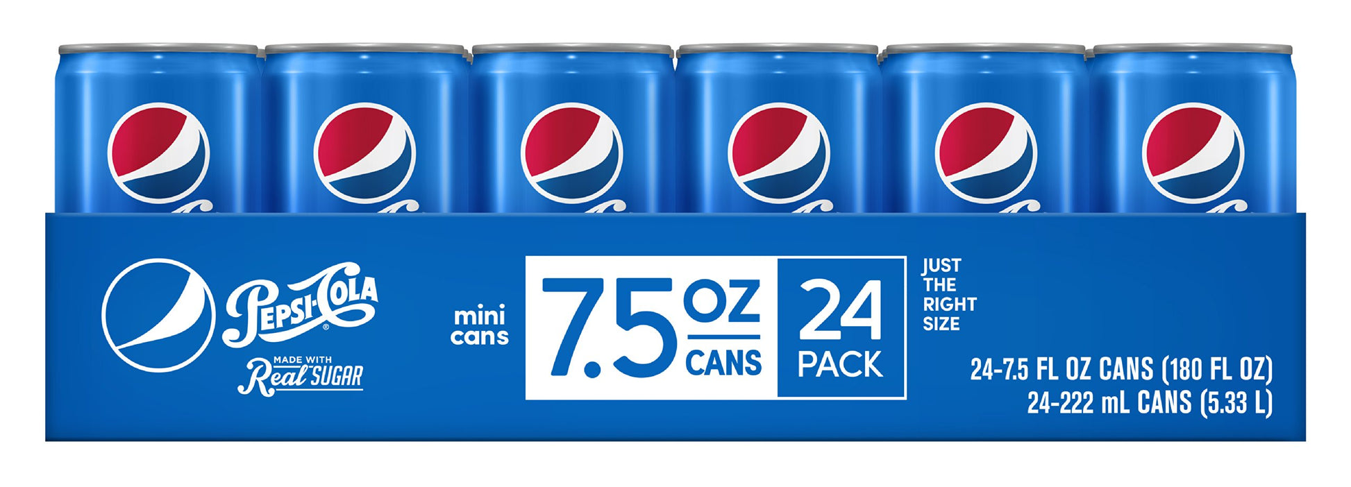 Pepsi Made with Real Sugar, 7.5 Fl Oz Mini Cans, 24 Pack - Refreshing Soda, Perfect for Parties and On-the-Go Enjoyment