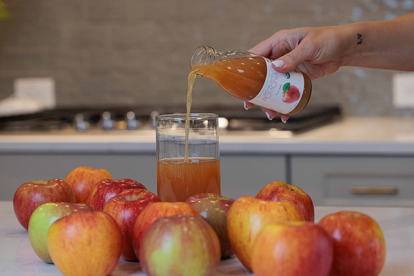 - Q: What makes Pomona Organic Apple Juice different from other apple juices? A: Pomona Organic Apple Juice is unique because it is made with only 100% pure organic apples and lemon juice, with no added sugar or preservatives. Unlike many other brands, our juice is cold-pressed and not made from concentrate, ensuring you get the freshest taste and maximum health benefits.