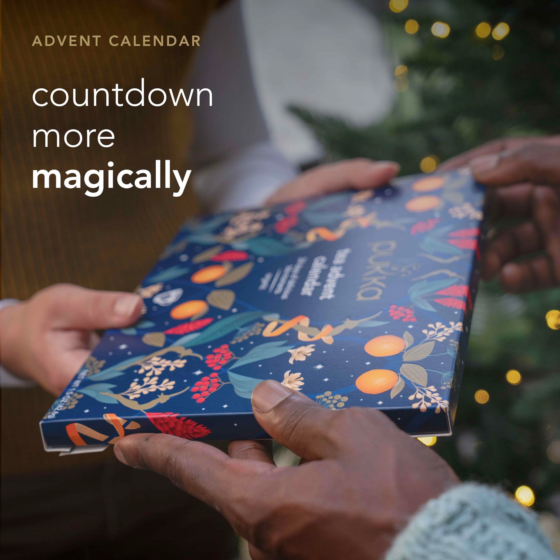 Treat yourself or someone you love this holiday season and unwrap a delicious daily surprise with the Pukka Tea Advent Calendar. Discover a fusion of flavours in every cup, including the festive essence of cinnamon, zesty orange, sweet elderberry and more. Featuring 24 tea sachets, each day brings a new, mouth-watering blend to enjoy as you countdown to Christmas. The Pukka Tea Advent Calendar contains unique blends created by herbalists and based on the health-promoting philosophy of Ayurvedic wisdom, each made with the finest organic herbs sustainably and ethically sourced from around the world. Our blends include favourites like Pukka Three Ginger; Winter Warmer; Night Time; Chamomile, Vanilla & Manuka Honey; Wild Apple & Cinnamon and Supreme Matcha Green. Designed to bring a daily dose of joy and warmth to your heart, this unique selection is perfect for devoted tea lovers looking for an alternative to chocolate. This beautifully crafted advent calendar is also fully recyclable, right down to the organic cotton string on our home-compostable tea bags. Pukka means 'real, authentic or genuine' in Hindi, reflecting our commitment to quality since 2001. We use 100% organic, ethically sourced herbs to create high-quality blends with delicious flavours in every cup. Relish the deliciousness of herbal goodness by pouring boiling water over your Pukka tea bag. Leave it to infuse for 3–5 minutes before enjoying your delicious hot tea.