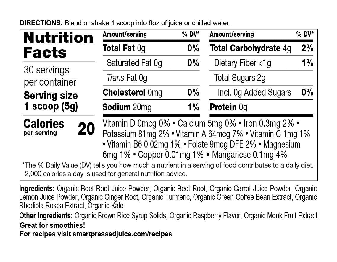 Q: Can this juice be used as a pre-workout supplement?A: Absolutely! Smart Pressed Juice Revive Beets & Roots is designed as a healthy pre-workout substitute, providing energy and vitality without the jitters of traditional energy drinks.
