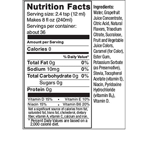 - Q: What are the main ingredients in SodaStream Pink Grapefruit Zero Calorie Syrup? A: SodaStream Pink Grapefruit Zero Calorie Syrup is naturally flavored and contains no calories. It is free from sugars, aspartame, sucralose, and preservatives, making it a healthier choice for flavoring sparkling water.