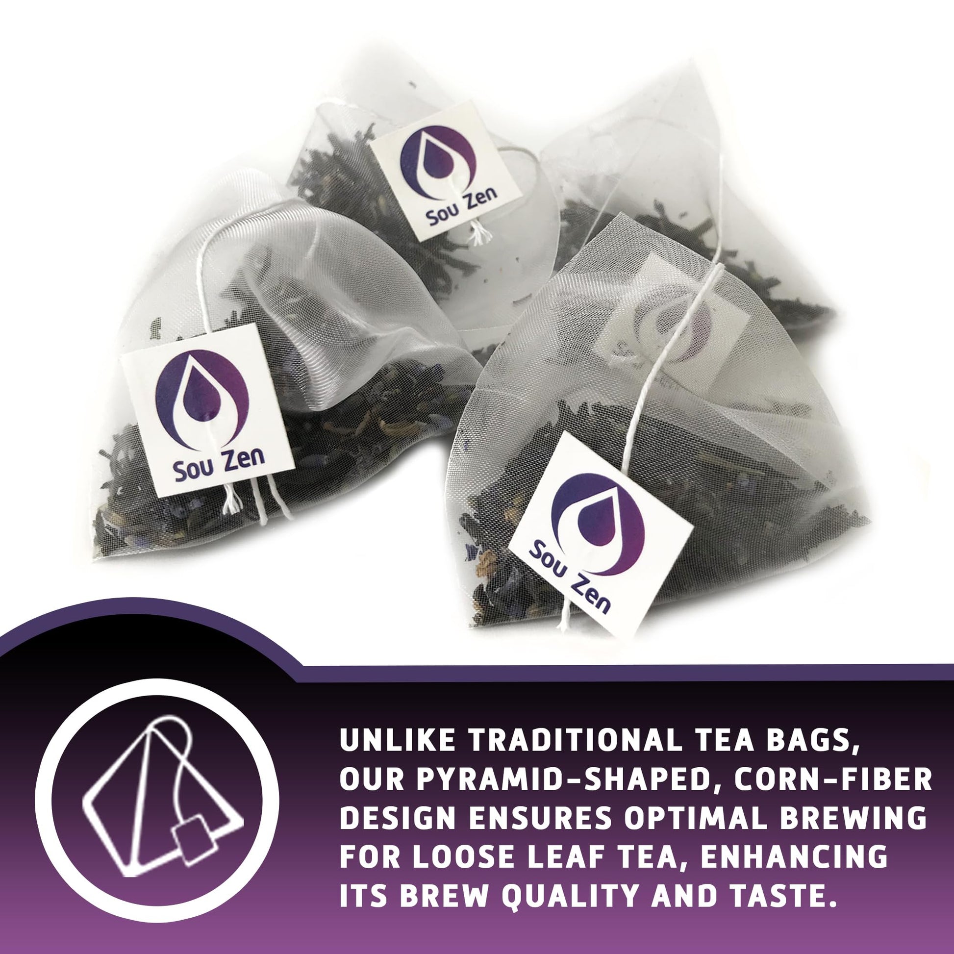 Sou Zen Believes That A Great Cup Of Tea Starts With The Highest Quality Ingredients. To Give You The Best Tea Experience Every Time, We Dont Compromise And Make Sure To Use Quality Ingredients In Every Blend. We Source The Highest Quality Black Earl Grey Tea From Sri Langka And Fragrant Lavender From China To Create The Perfect Combination Of Flavorful Earl Grey Tea And Lavender. Each Corn-Fiber Pyramid Tea Bag Of Our Unique Earl Grey Lavender Black Tea Blend Is Crafted With Care And Allows For Better Brewing. We Are Confident That Our Blend Will Leave You Feeling Energized And Ready To Boost Your Mornings.