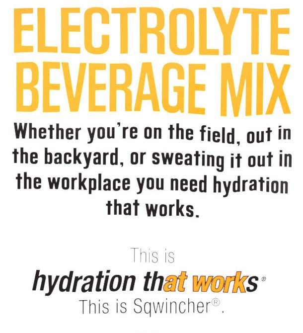 Sqwincher Powder Concentrate Electrolyte Replacement Beverage Mix. The Sqwincher That Is Just Right Every Time. Satisfy Your Sqwincher Craving In Large Or Small Amounts Anytime You Want. Great Tasting, Scientifically Formulated Electrolyte Replacement Drink Is Designed To Restore Important Mineral Salts And Fluids Lost Through Dehydration, Physical Exertion And Heat Stress. Sqwincher Is More Satisfying Than Water Or Soft Drinks Because The Body Absorbs It More Quickly And Restores It To Its Proper Electrolyte And Fluid Balance. Powder Pack Mixes Quickly And Easily With Water. Sqwincher Is The Natural Recovery Source For Dehydration. Make As Little Or As Much Sqwincher As You Want. Have A Glass On A Hot Day, Or Help Keep The Whole Basketball Team Cool. Orange Flavor. 5 Gallon Yields.