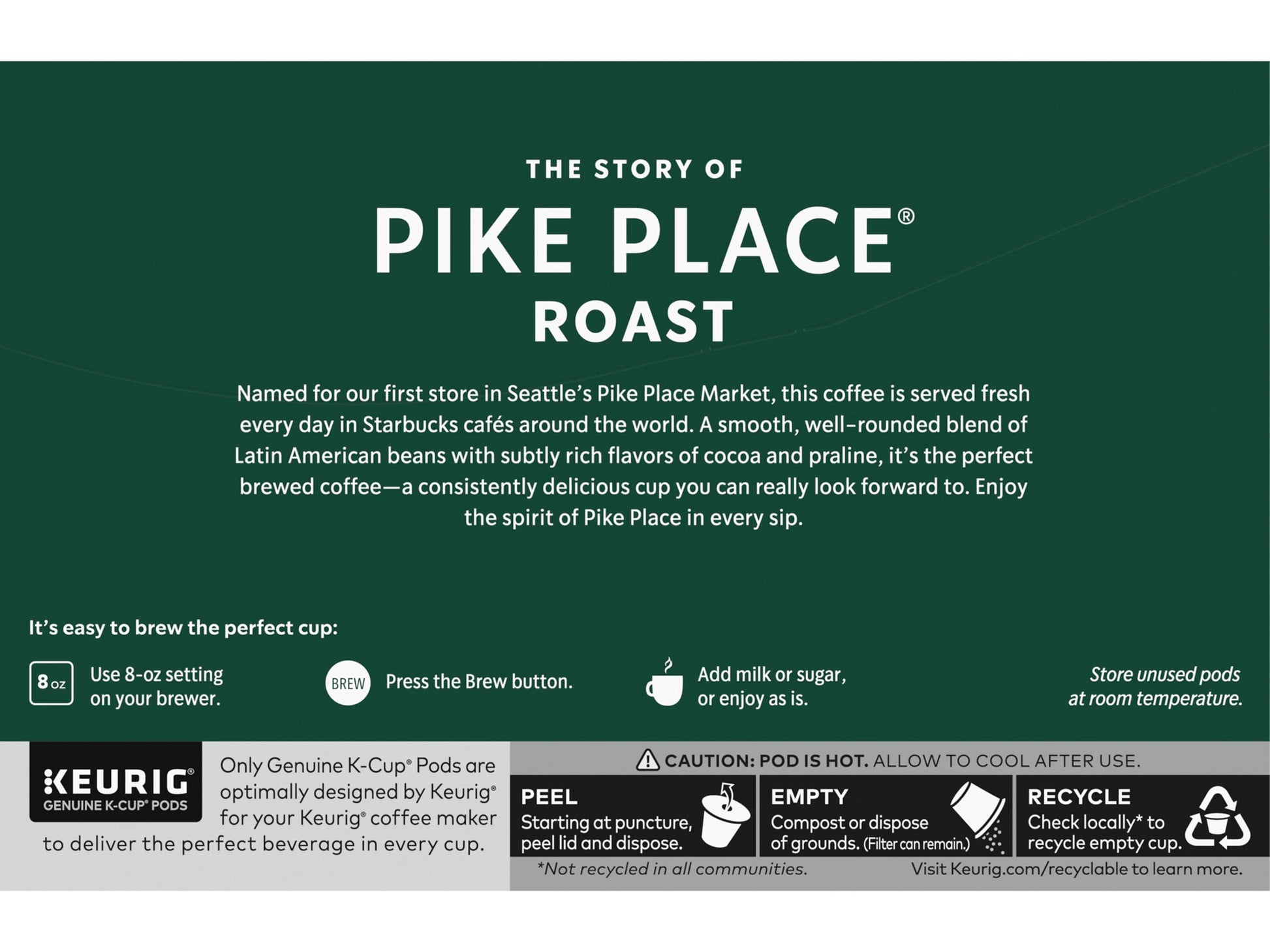 Q: Are these K-Cups compatible with all Keurig coffee makers?A: Yes, Starbucks Pike Place Roast K-Cups are compatible with all Keurig coffee makers, allowing you to enjoy a fresh cup of coffee with convenience.