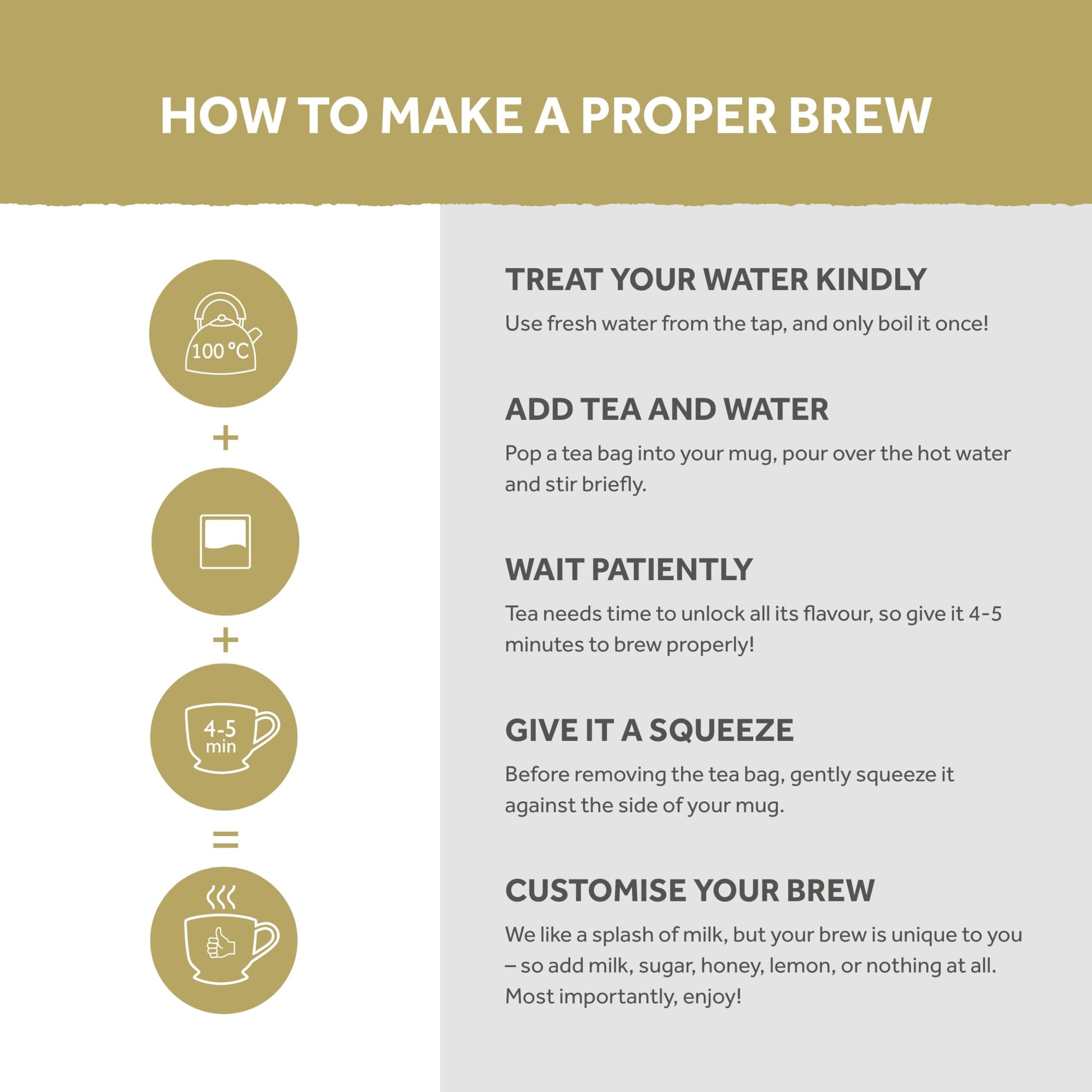 - Q: How do I brew the perfect cup of Yorkshire Gold tea? A: To brew the perfect cup of Yorkshire Gold tea, use one tea bag for each cup. Add freshly boiled water and let it infuse for 4-5 minutes. You can enjoy it pure or with milk, depending on your preference.
