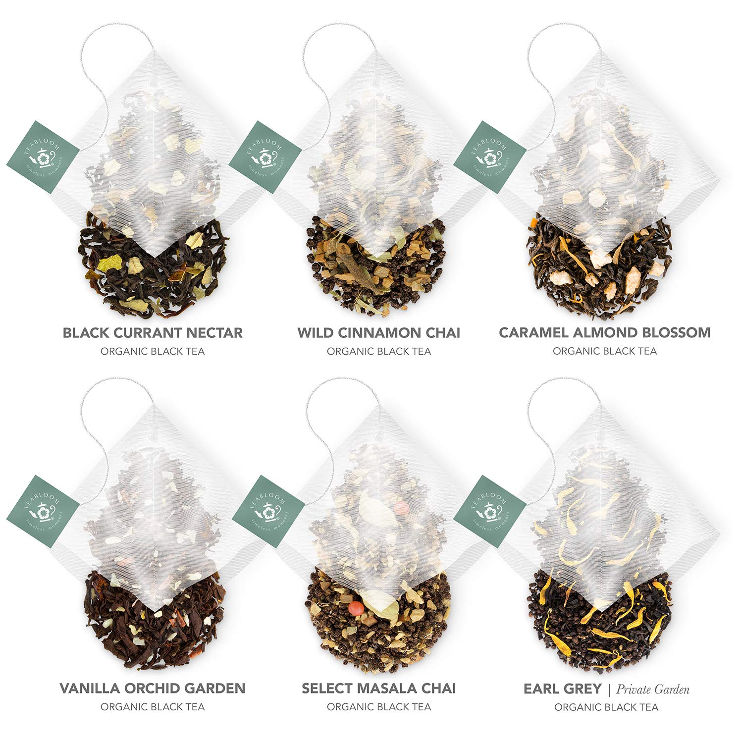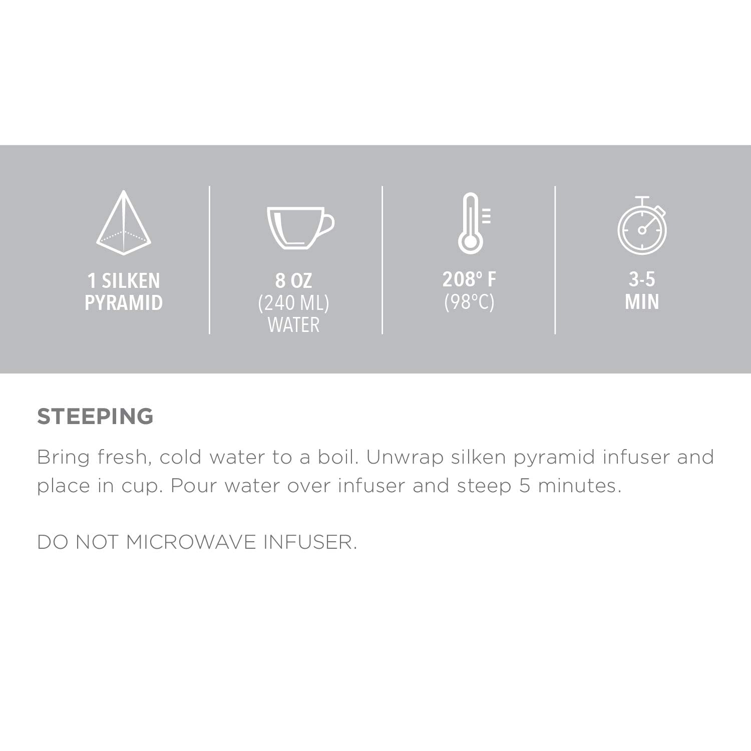 - Q: How should I steep these whole-leaf pyramid tea sachets for the best flavor? A: For optimal flavor, steep the whole-leaf pyramid tea sachets in hot water at the recommended temperature for each blend, typically around 200°F (93°C) for black teas. Refer to the included tea guide for specific steeping instructions.