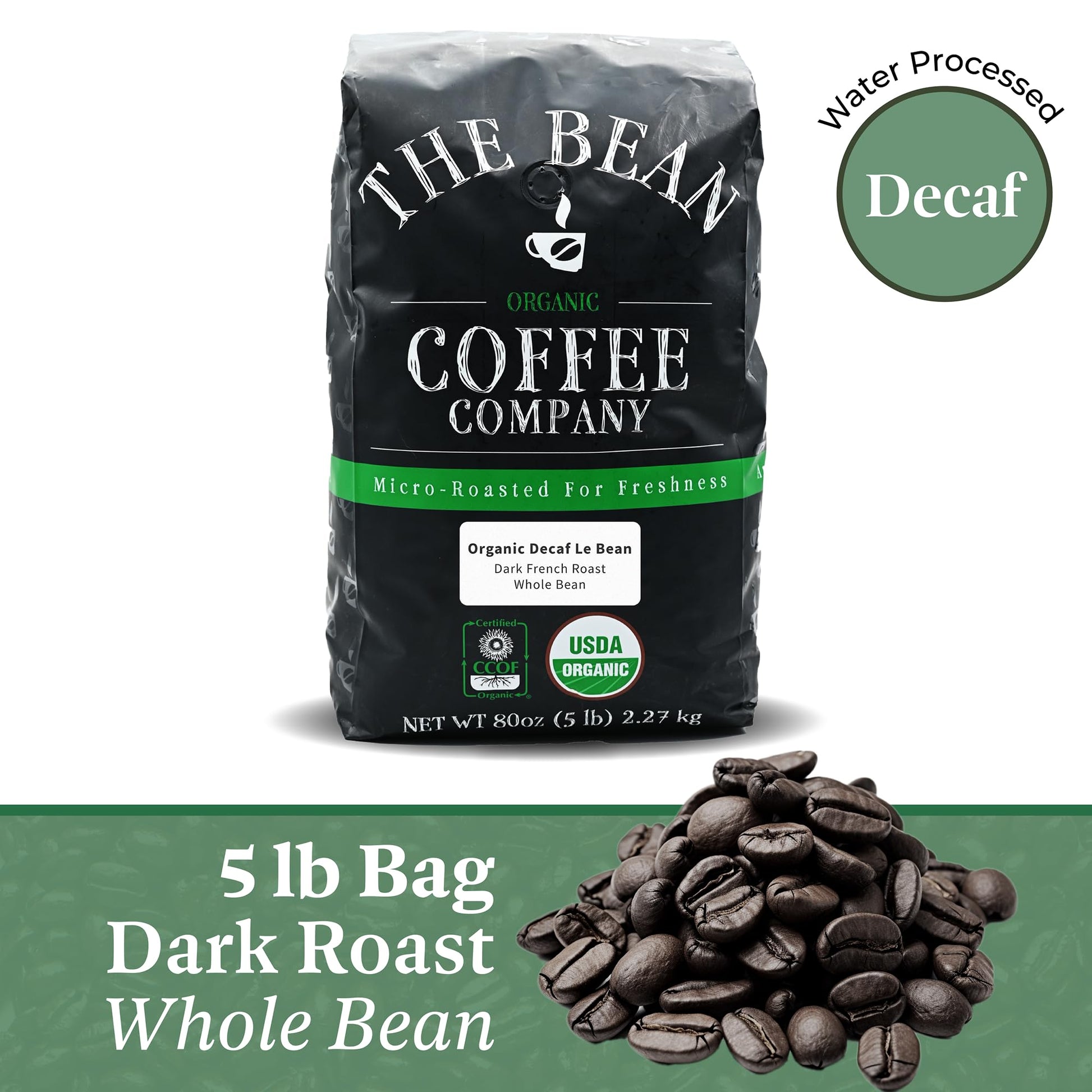 Q: What makes The Bean Organic Coffee Company's decaf coffee different from regular coffee?A: The Bean Organic Coffee Company's decaf coffee is made from 100% Arabica beans and is processed using the Swiss Water Method, which removes caffeine without chemicals, preserving the coffee's natural flavors.