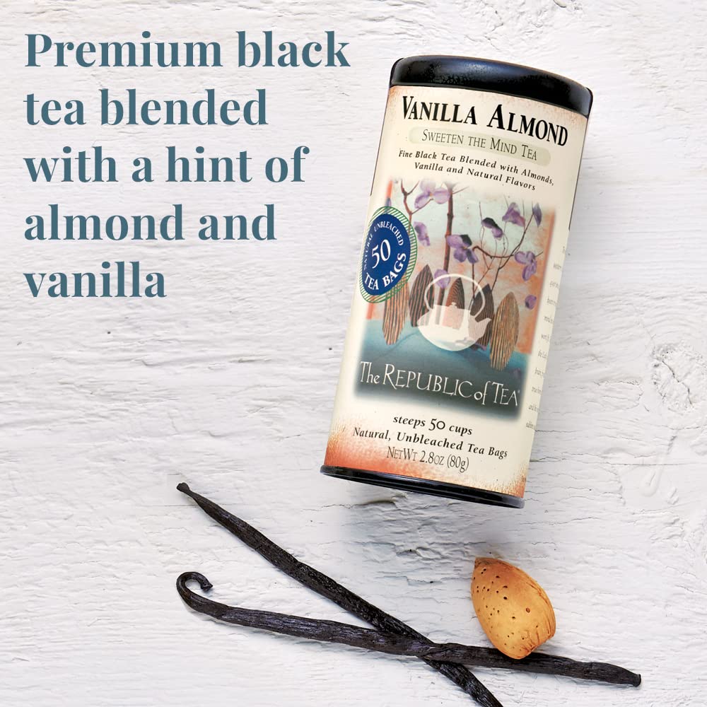 SWEETEN THE MIND TEA: The rich smoothness of real vanilla takes over the first sip of this tea, sweetening the cup; A nutty almond note follows which sends it soaring into the realm of dessert; Top a strong blend with steamed milk for a creamy tea latte | INGREDIENTS: Black tea and natural vanilla and almond flavors | FLAVORFUL: A perfect blend that combine the health properties of Black tea with the sweet taste of Vanilla and bold Almond flavor to give you that deliciously satisfying taste | REFRESHMENT: Vanilla Almond Black Tea is not just ordinary refreshment; Black Tea aids in clearing up a foggy mind and boosting mental awareness with the delicious sweet taste of Vanilla