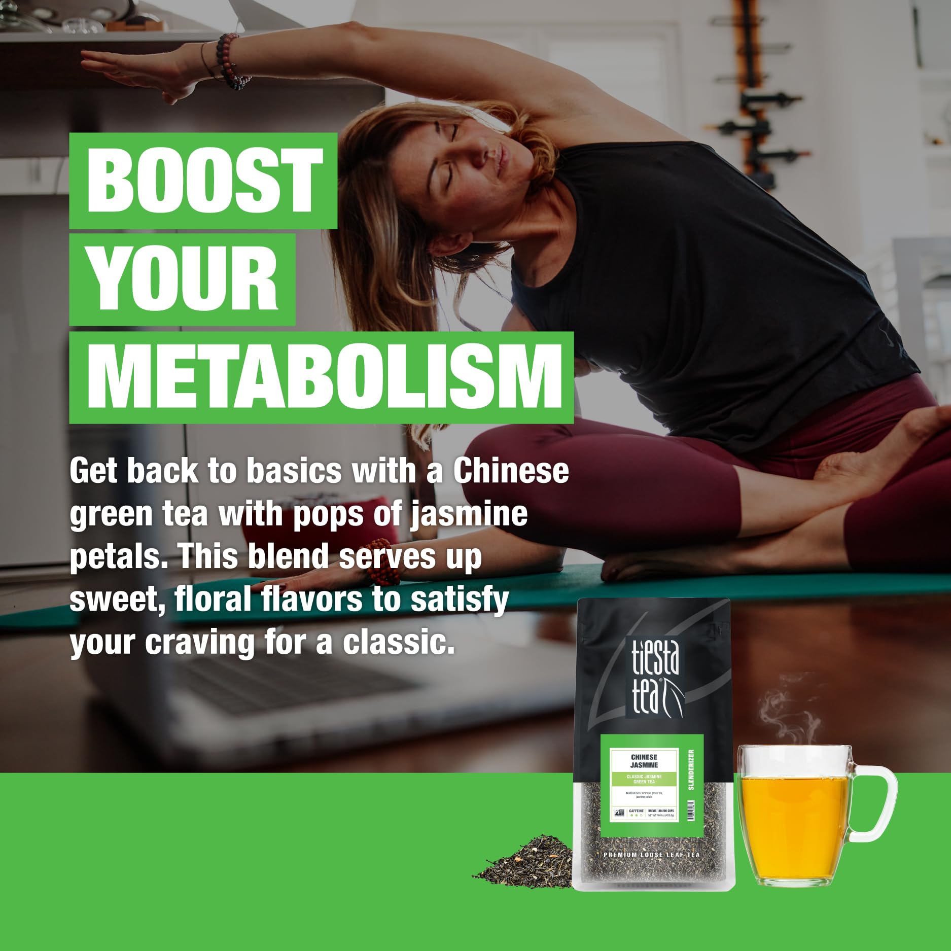 - Q: What is the best way to brew Tiesta Tea's Chinese Jasmine Green Tea? A: To brew the perfect cup of Tiesta Tea's Chinese Jasmine Green Tea, use 1.5 teaspoons of loose leaf tea for every 8 ounces of hot water heated to 175 degrees Fahrenheit. Steep for 5-7 minutes to fully release the flavors.