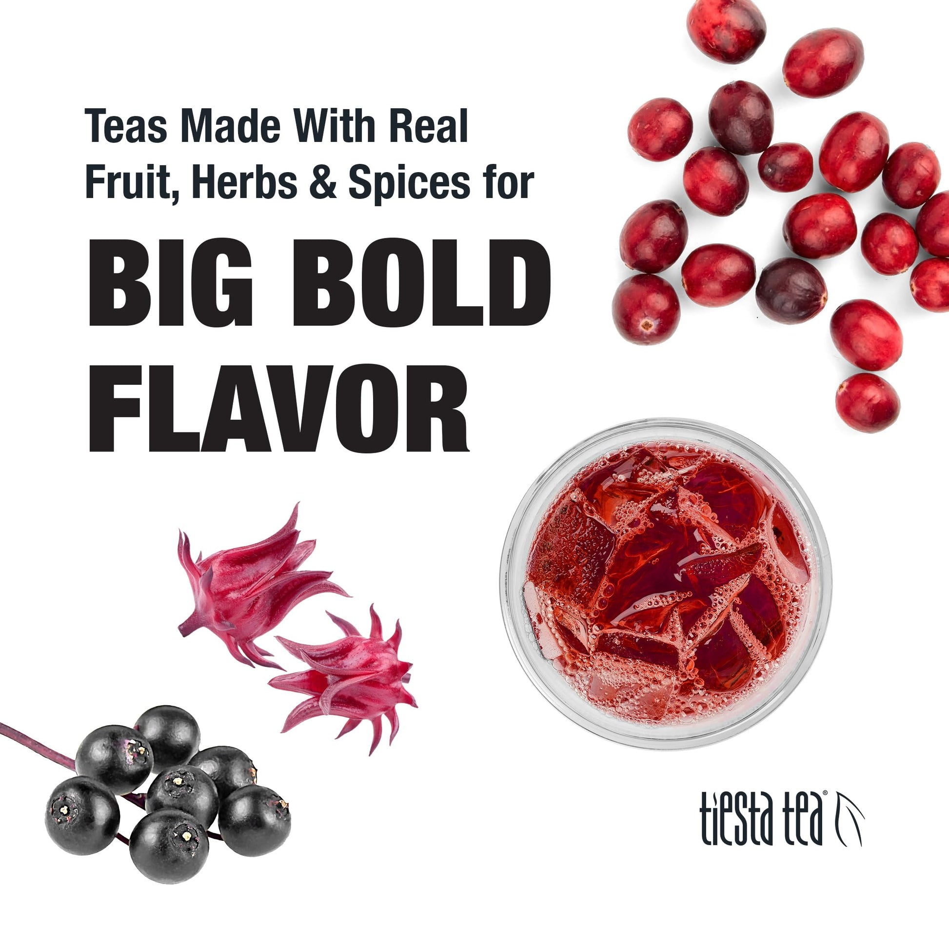 Q: What ingredients are in Tiesta Tea's Fireberry Cold Brew Tea?A: Tiesta Tea's Fireberry Cold Brew Tea contains natural ingredients including hibiscus, rose hip, rooibos tea, elderberries, currants, sweet blackberry leaves, cranberries, and rose petals, ensuring a deliciously genuine taste with every sip.