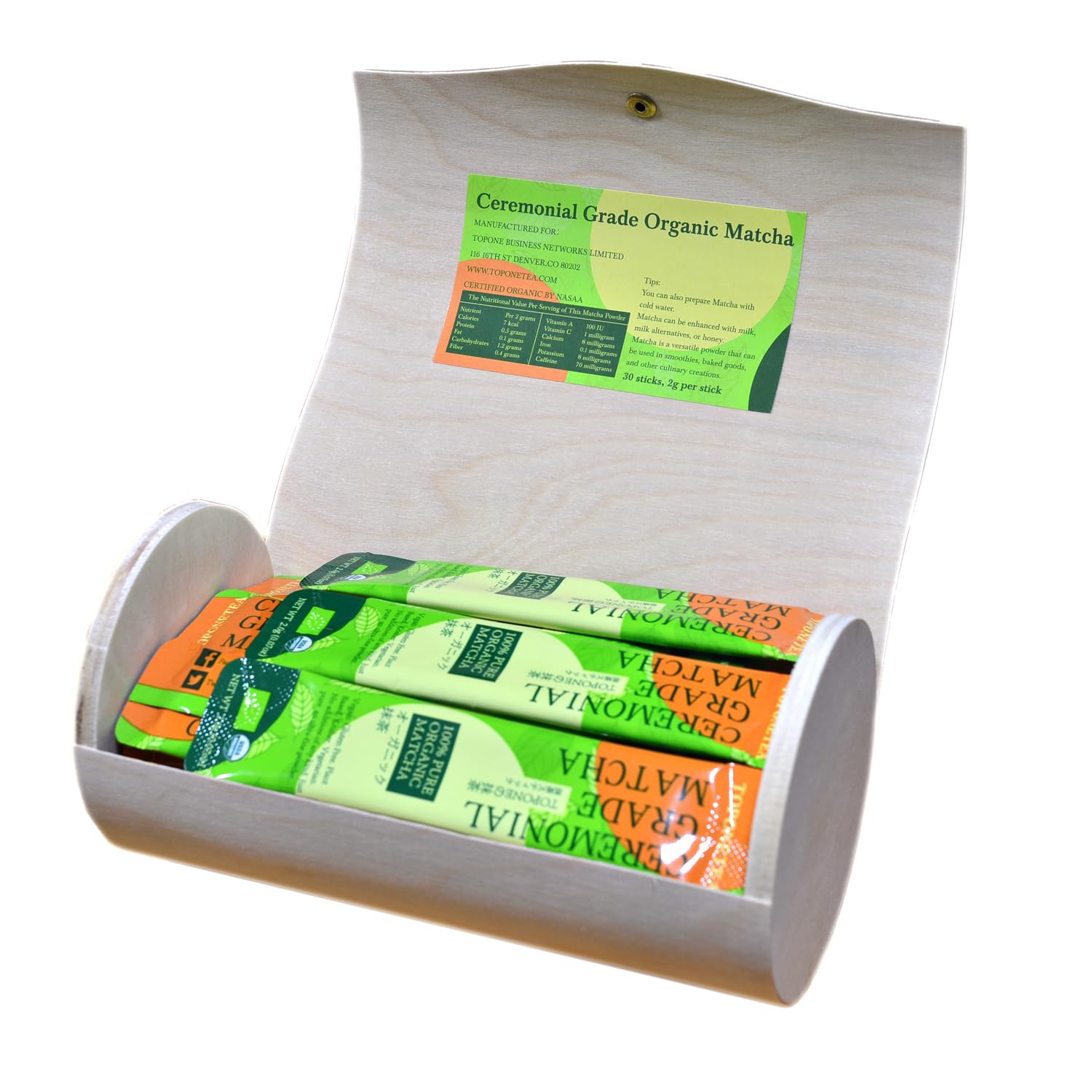- Q: What is TOP ONE Ceremonial Grade Organic Matcha Green Tea Powder? A: TOP ONE Ceremonial Grade Organic Matcha Green Tea Powder is a premium, 100% organic matcha sourced from Japan, packaged in 30 convenient single-serve stick packs. It is made using traditional methods to ensure high quality and authentic flavor.