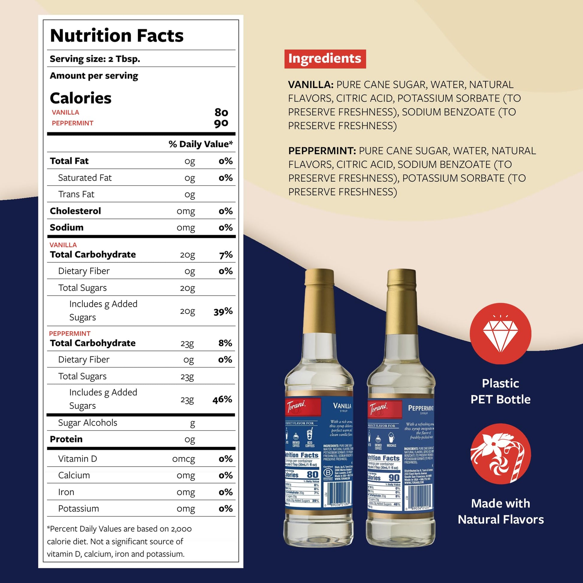 With A Torani Vanilla Syrup And Torani Peppermint Syrup, You'Ll Always Have Deliciously Creative Ways To Add Sweetness To Your Life. Plus, This Set-Complete With Pumps For Mess-Free Dispensing-Makes The Perfect Housewarming Or Host Gift! Torani Drink Syrups Liven Up An Iced Latte, Add Pizzazz To A Soda, Or Put More Oomph In Iced Tea. Theres No Wrong Way To Go About It. We Have Flavors For Every Moment, So You Can Flavor Your Way, No Matter Where Life Takes You. Each Bottle Also Promises Our Dedication To Help All The People, Partners, And Communities We Touch Thrive. We Believe That Everything Starts With People And That Businesses Can, And Should, Create More Opportunities For People.
