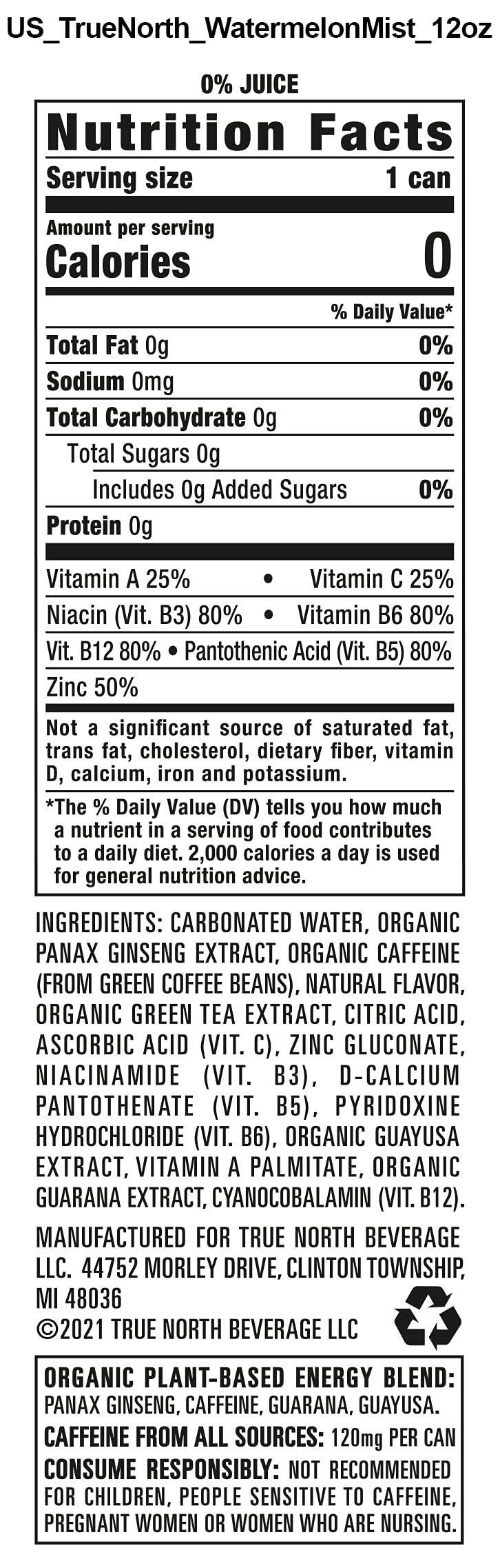 - Q: What makes True North Energy Seltzer different from other energy drinks? A: True North Energy Seltzer stands out due to its organic plant-based energy source, zero calories, and lack of artificial ingredients. It focuses on natural hydration and energy without the crash often associated with traditional energy drinks.