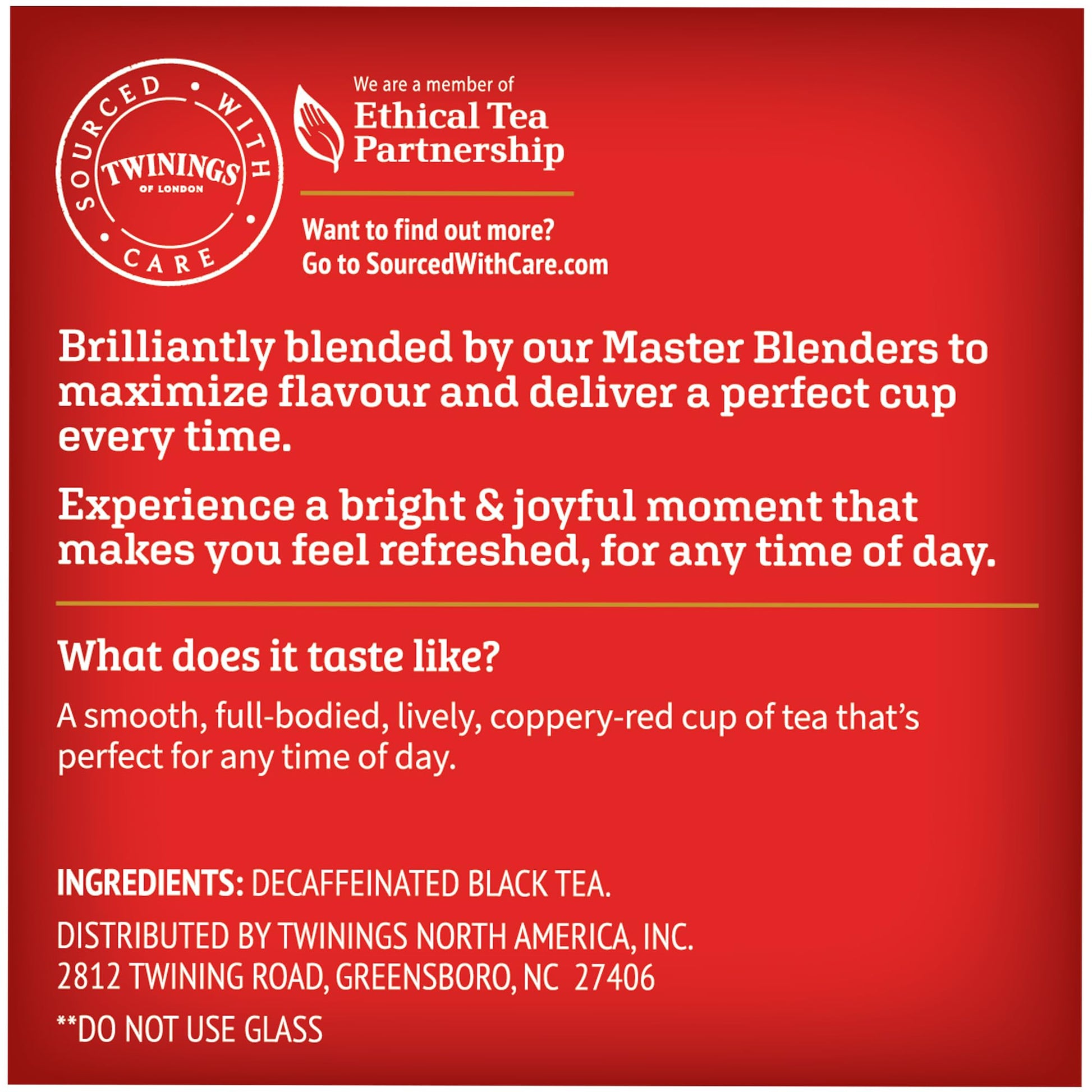 - Q: What sets Twinings Decaffeinated English Breakfast tea apart from other brands? A: Twinings Decaffeinated English Breakfast tea is sourced from high-quality tea leaves from regions like Kenya, Indonesia, and Assam. Their commitment to ethical sourcing and sustainability, combined with a signature blend of tradition and innovation, ensures a superior tea experience.