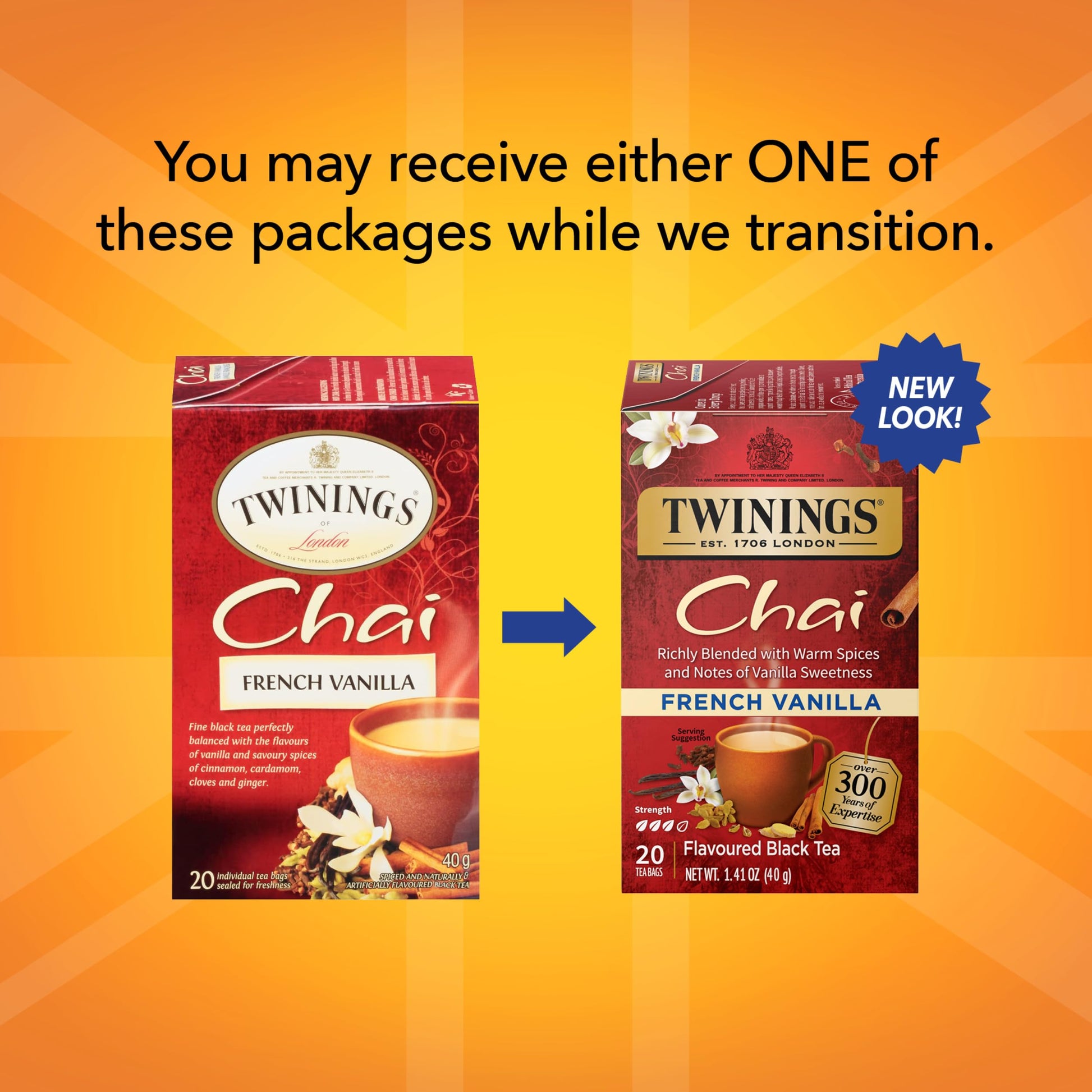 Twinings Is An English Specialty Tea Company Founded In 1706 And Is The Favorite Choice Of Tea Lovers Everywhere. The Finest Black Tea Expertly Blended With The Enticing Flavor Of Sweet Vanilla And The Savory Spice Flavors Of Cinnamon, Cardamom, Cloves And Ginger To Deliver A Delicious Tea With A Warm Soothing Aroma And Smooth, Creamy Taste.