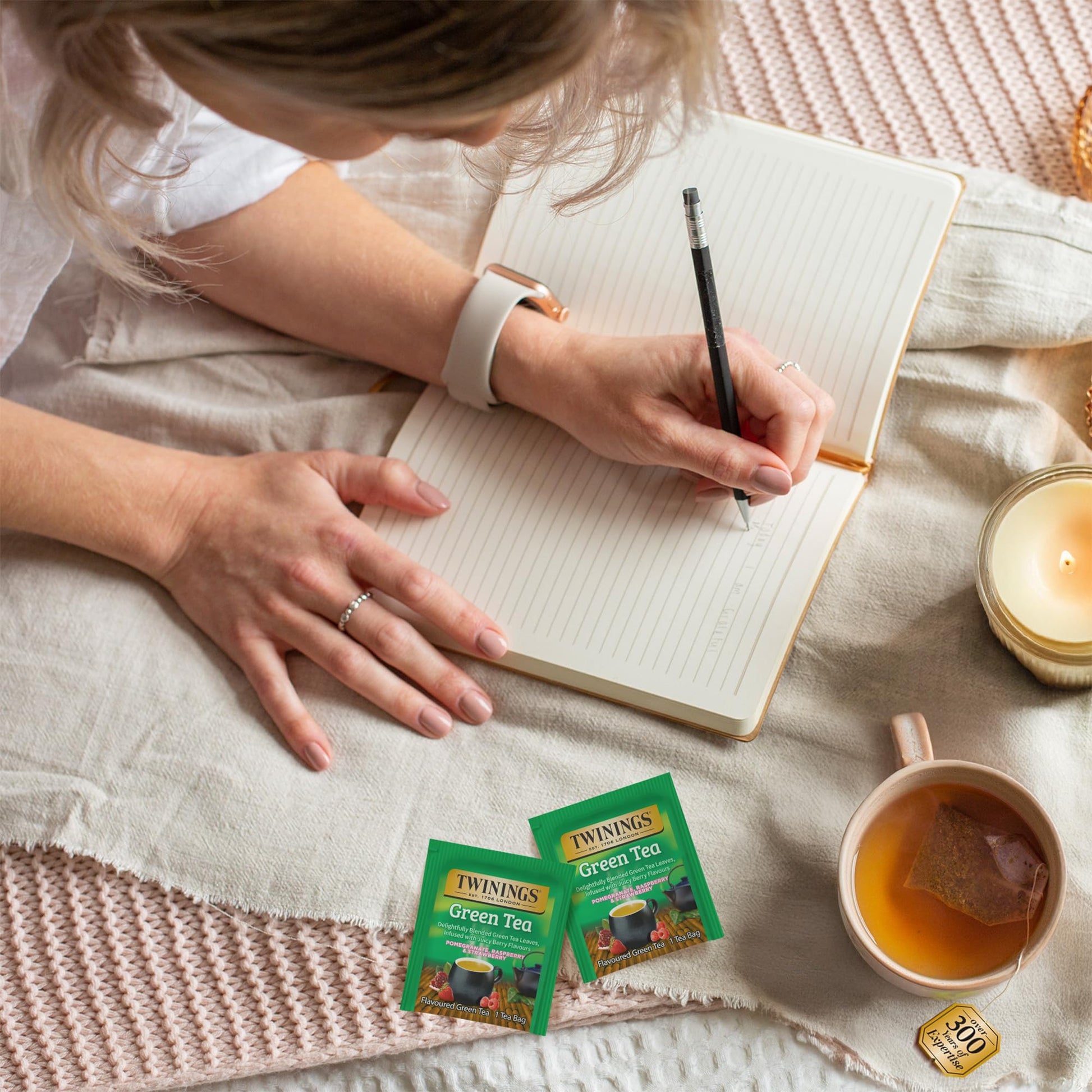 Twinings Green Tea With Pomegranate, Raspberry, & Strawberry Individually Wrapped Bags, 20 Count (Pack Of 6), Caffeinated, Enjoy Hot Or Iced | Packaging May Vary