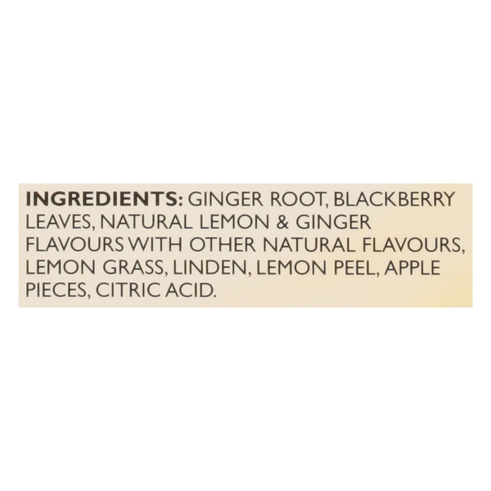 A comforting herbal tea expertly blended with ginger and the tangy flavor of lemon to deliver a soothing tea with a warm, inviting aroma and spiced lemon taste.