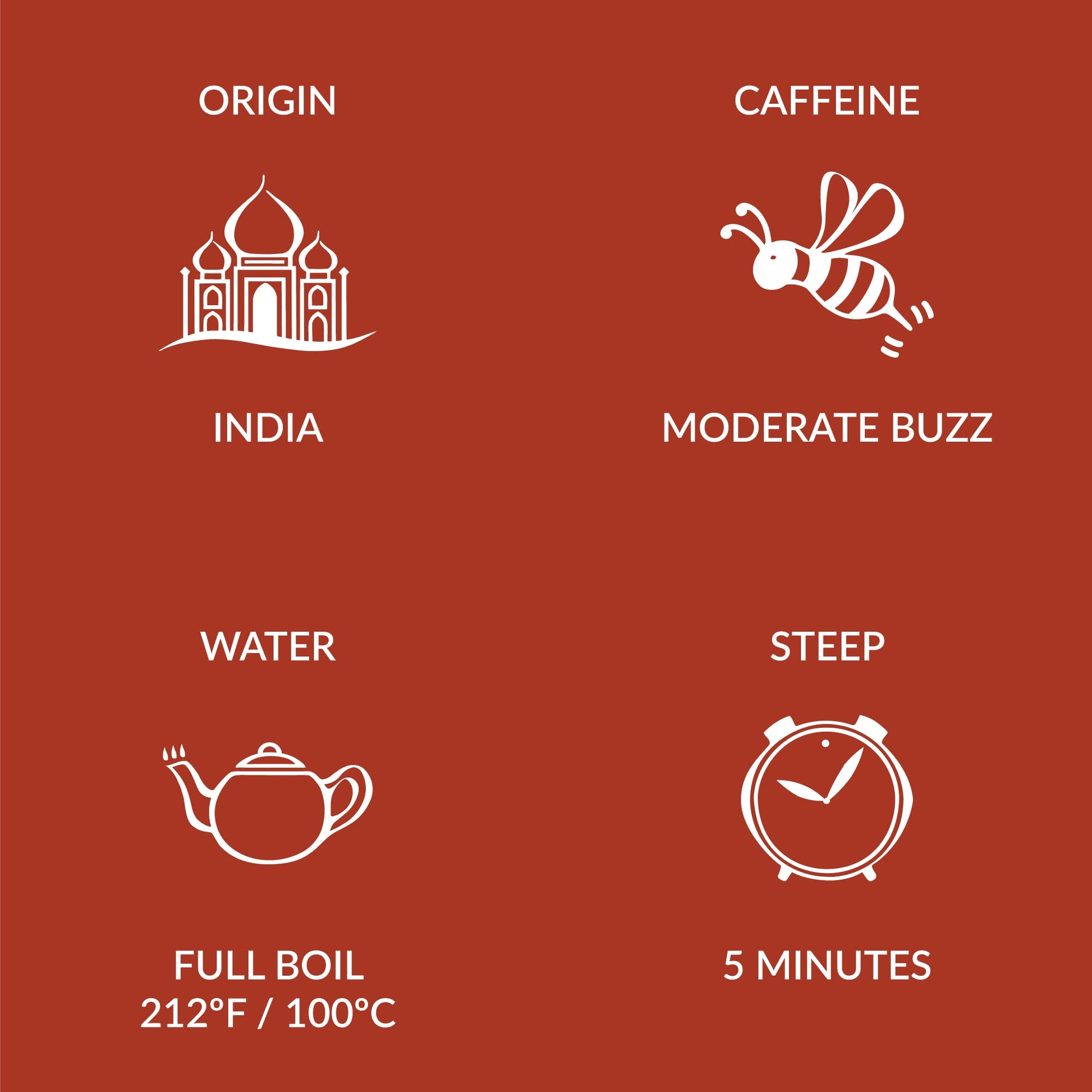 Q: How should I prepare Two Leaves and a Bud Chai Tea?A: You can prepare Two Leaves and a Bud Chai Tea by steeping the whole leaf tea sachets in hot water for about 3-5 minutes. For a creamier taste, consider adding milk and sweetener, or enjoy it plain for a more traditional chai experience.