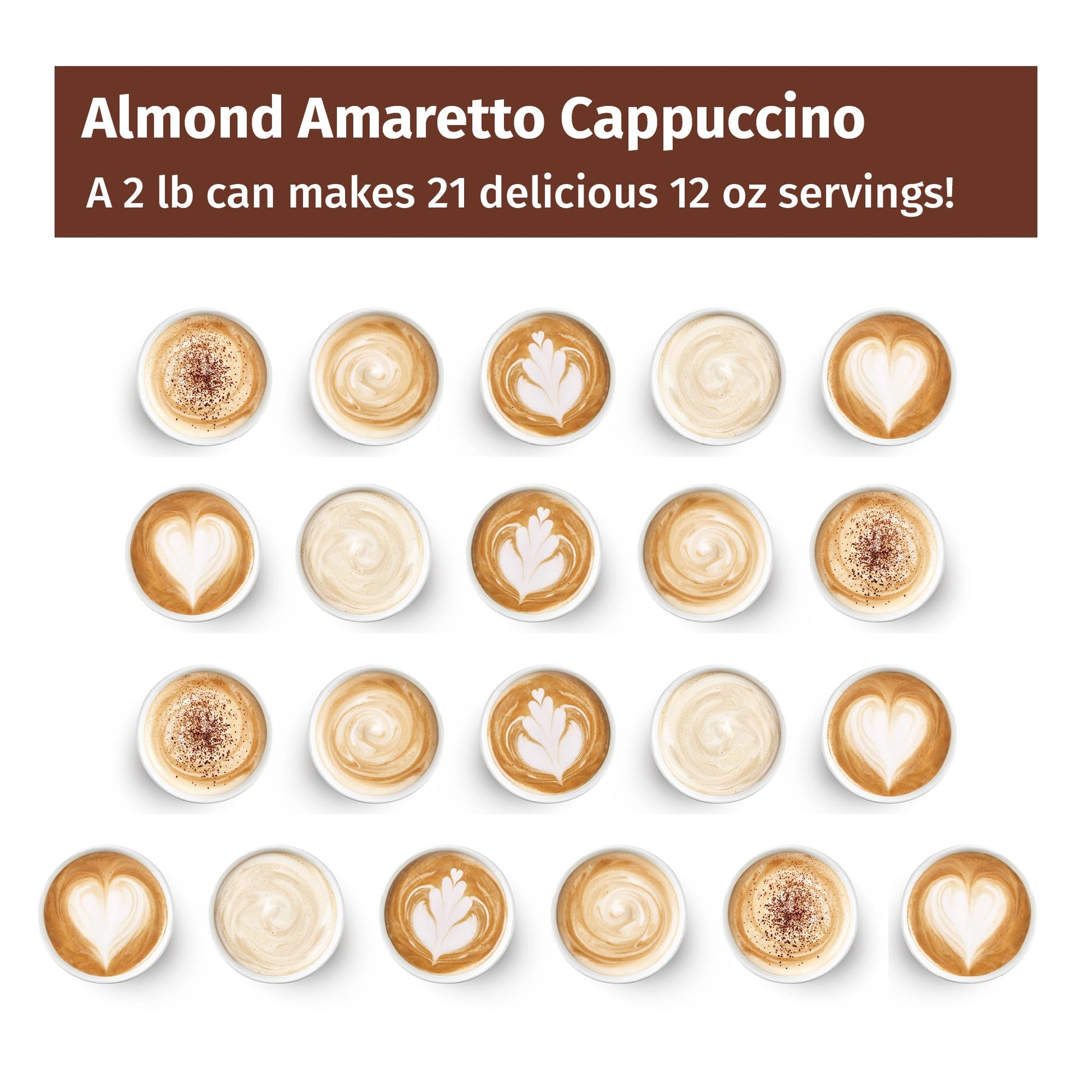 Q: How do I prepare the Almond Amaretto cappuccino?A: Preparation is easy! Just add hot water to the desired amount of the cappuccino mix, stir well, and enjoy. For iced versions, mix with cold water and ice, or blend it for a frosty treat.