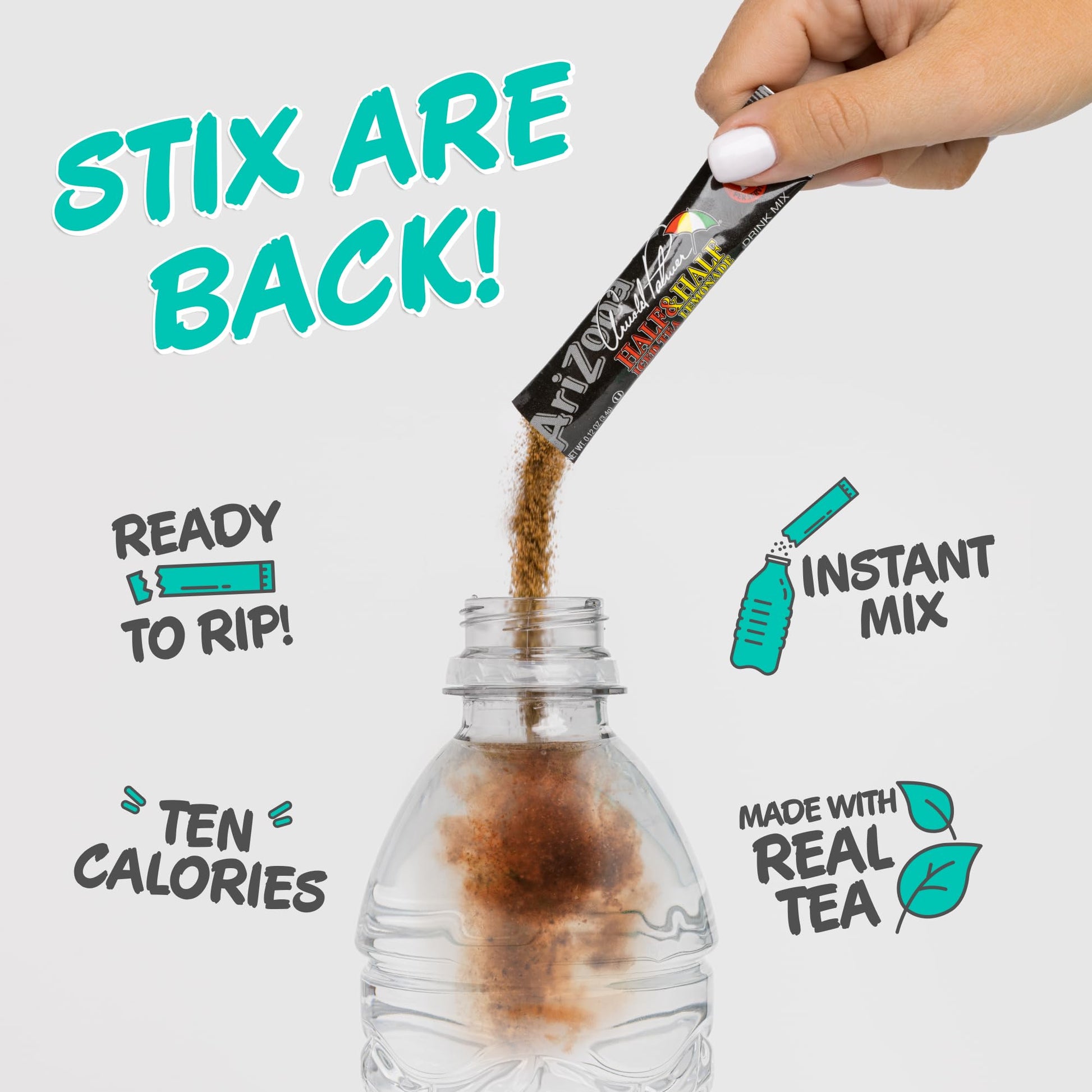 At only 10 calories, AriZona Arnold Palmer Stix are the smooth move to keep a sweet stroke without the extra calories. AriZona Arnold Palmer Iced Tea Lemonade Stix are the best way to start off a great round. Take it on the go in a water bottle to live like the legend himself. Half iced tea, half lemonade, 100% party.