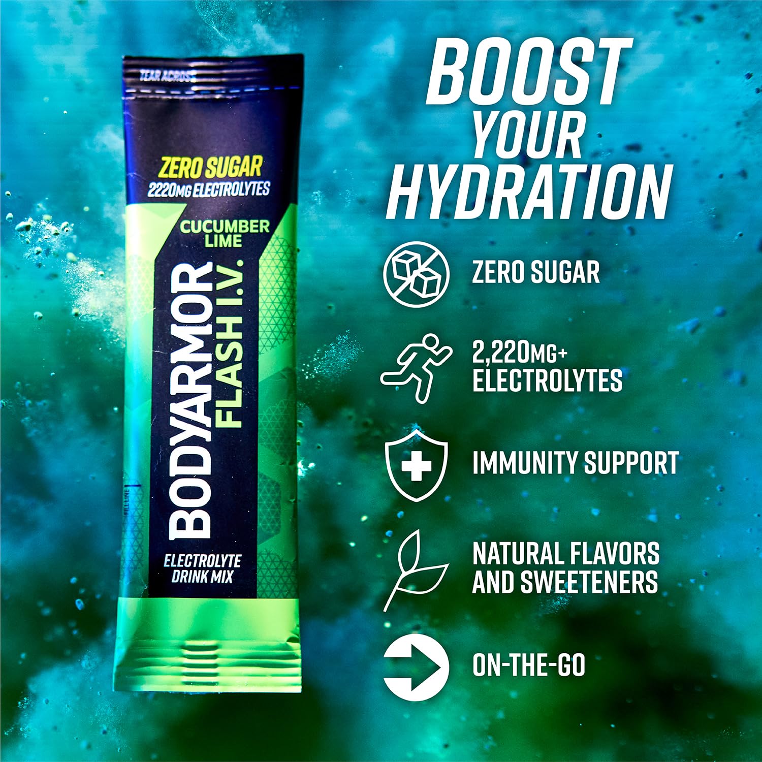 - Q: What are the key benefits of using BODYARMOR Flash IV Electrolyte Packets? A: BODYARMOR Flash IV Electrolyte Packets provide a convenient source of hydration with a blend of 2,230 mg of electrolytes, along with added Zinc and Vitamins B and C. These zero sugar drink mixes are designed to replenish lost fluids and nutrients, making them ideal for athletes and active individuals.