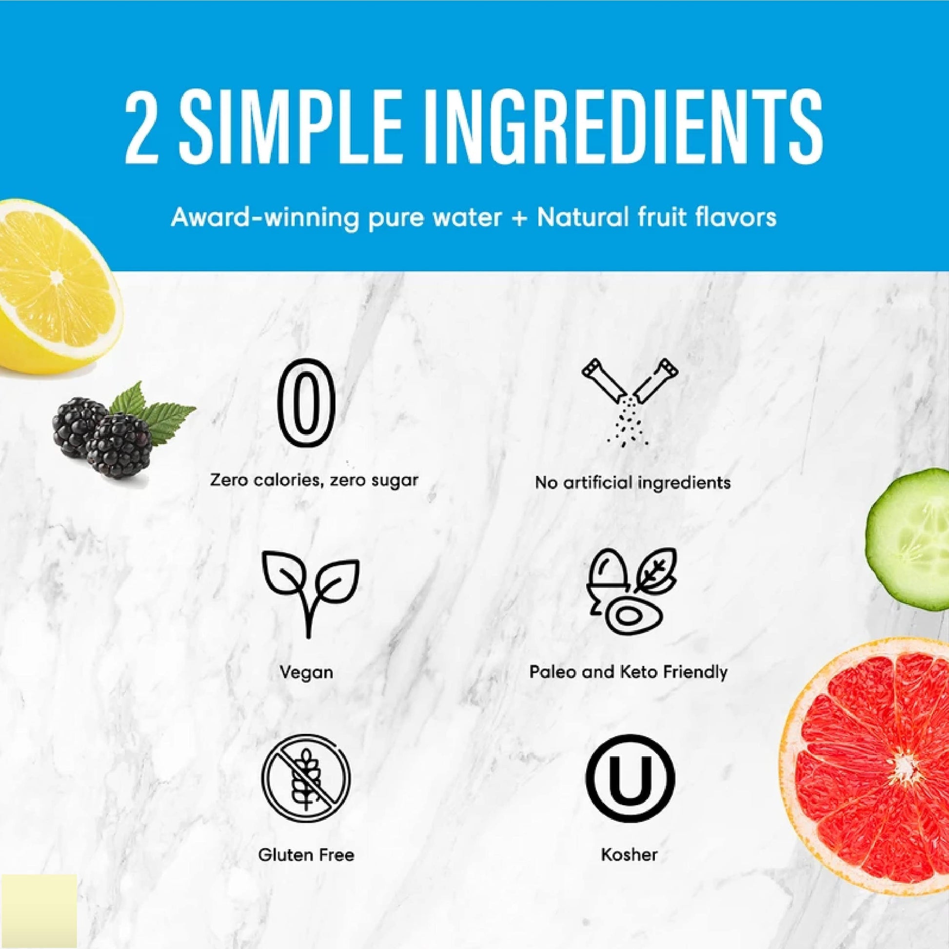 - Q: What are the health benefits of Boxed Water's blackberry flavored water? A: Boxed Water's blackberry flavored water is 100% purified and contains zero calories, sugar, and artificial ingredients. It's vegan, gluten-free, paleo, and keto-friendly, making it a healthy hydration option that supports various dietary preferences.