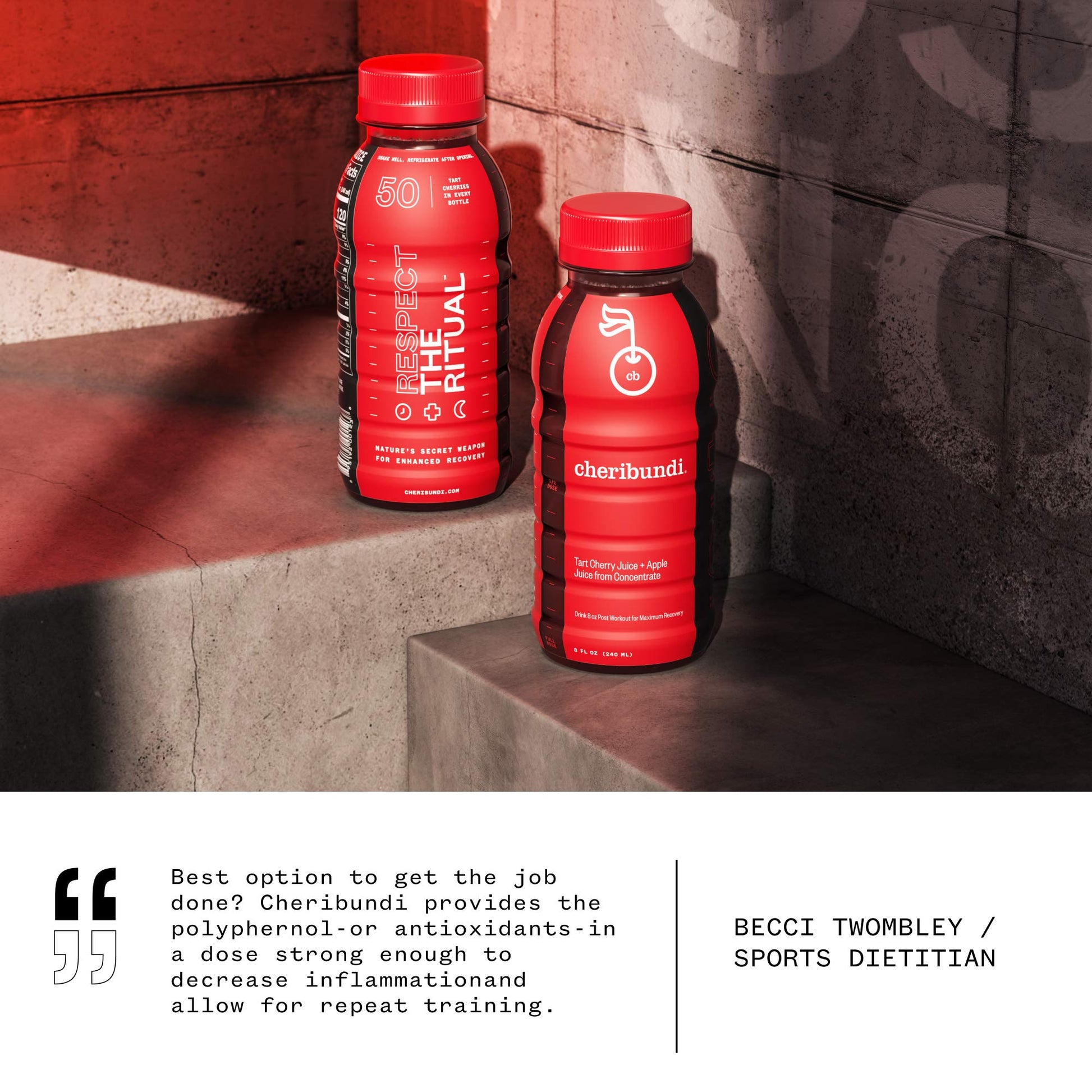 Antioxidants in tart cherries reduce inflammation and speed muscle recovery | Contains naturally occurring melatonin to help improve sleep | 100% juice; not from concentrate; fresh pressed | Over 200 professional & collegiate teams drink Cheribundi