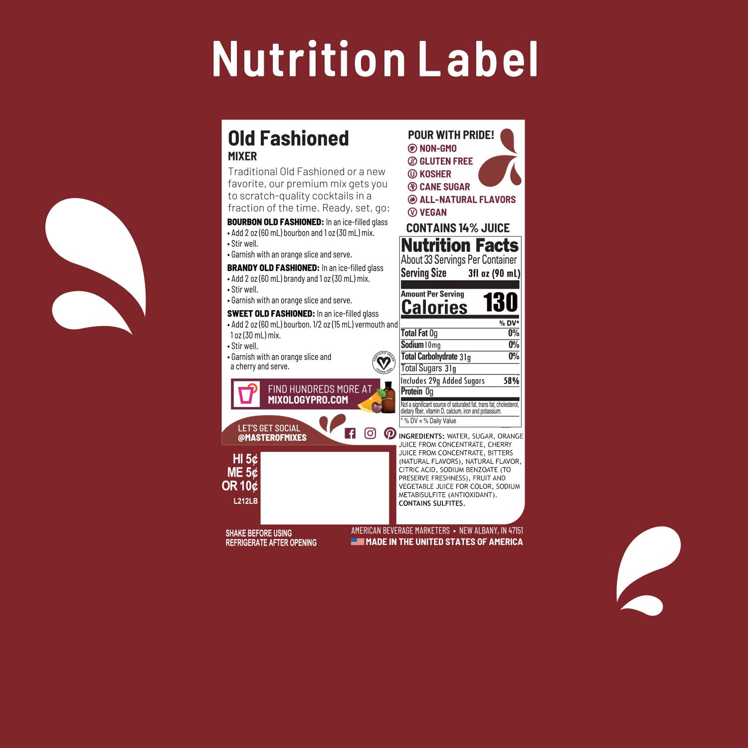 Master of Mixes Old Fashioned Drink Mix, Ready To Use, 1 Liter Bottle (33.8 Fl Oz), Pack of 6
