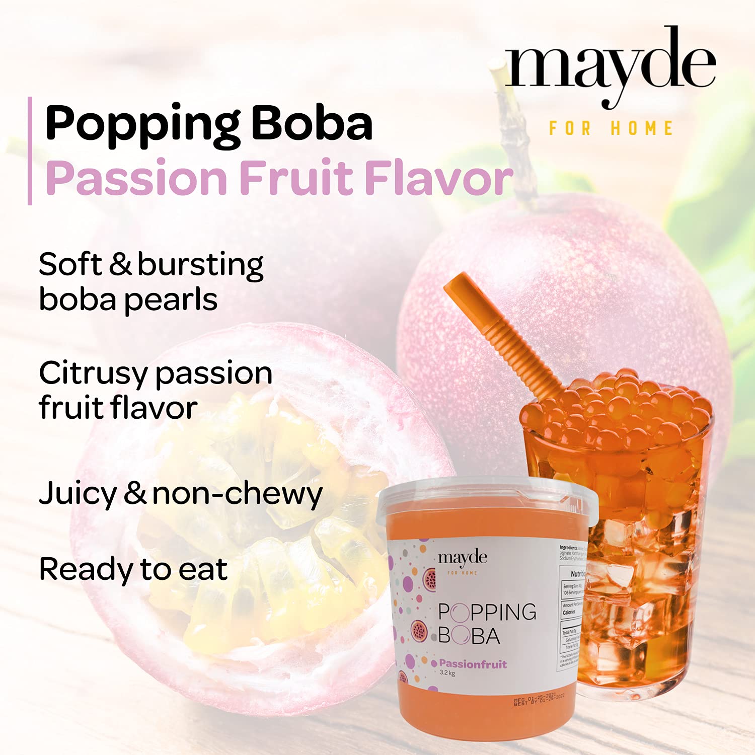 Mayde Popping Boba Pearls for Drinks, Desserts, & Breakfast Bowls (Passion Fruit Flavor, 7 Pounds)