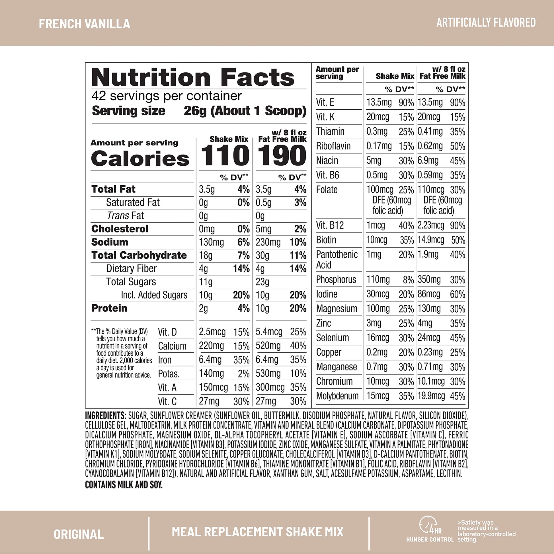 The SlimFast Original French Vanilla Shake Mix is designed to provide a convenient and tasty meal replacement option for those seeking to manage their weight. This creamy shake mix offers a delicious solution for individuals looking to maintain energy and curb hunger throughout the day.