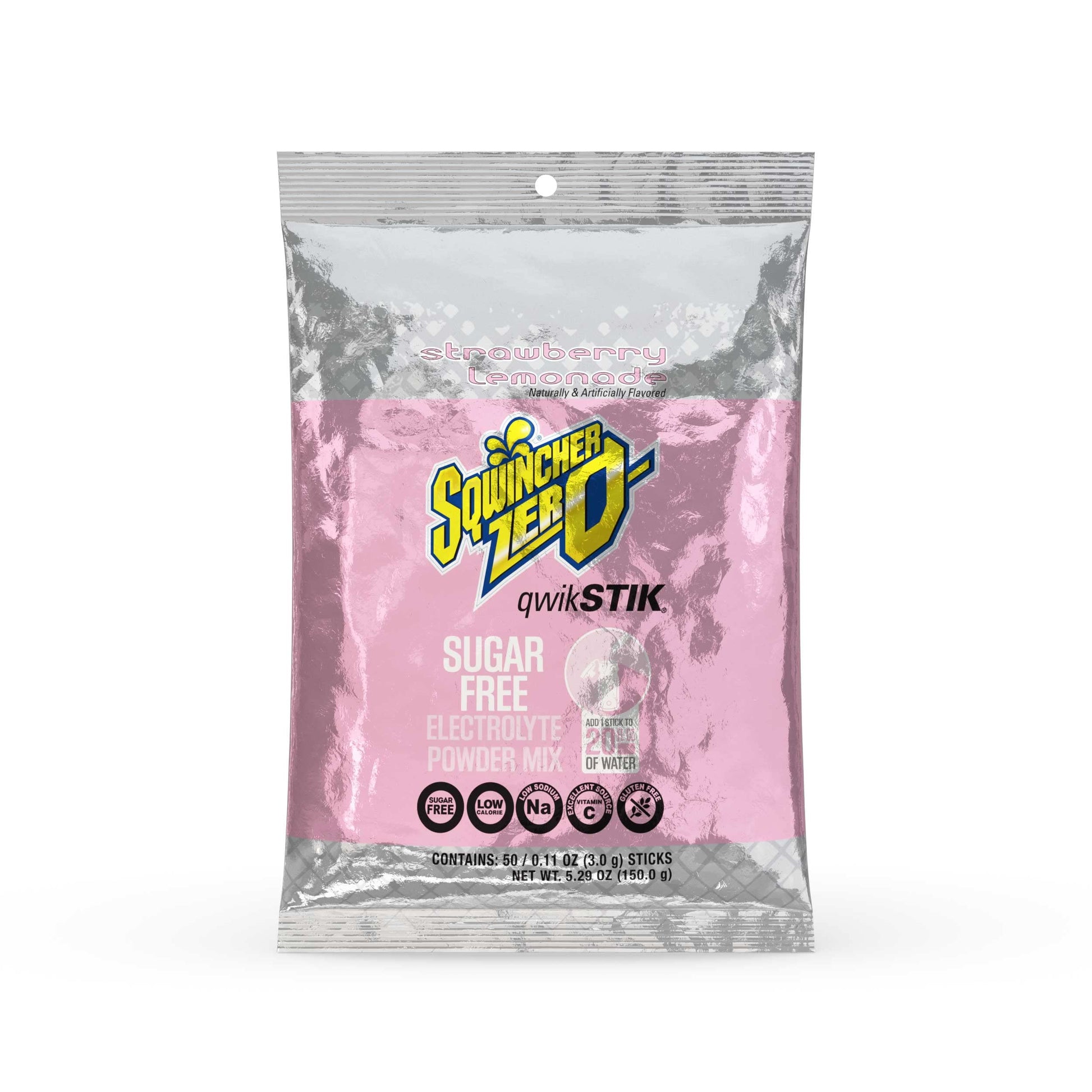 Sqwincher Zero Qwik Stik, Sugar Free, Low Calorie, Low Sodium Electrolyte Powder Hydration Drink Mix, Strawberry Lemonade, .11 0Z Packet (Pack Of 50)
