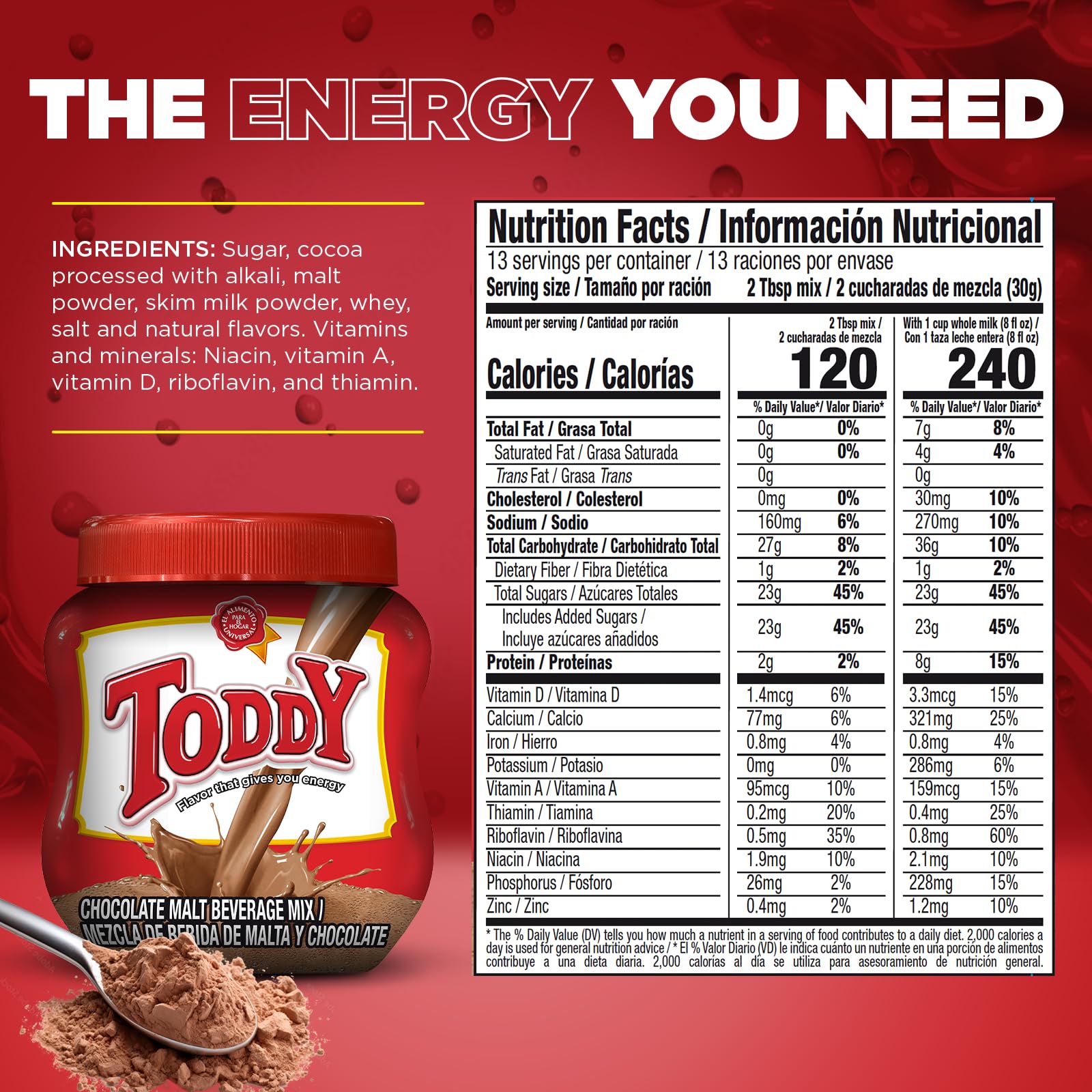 Toddy Chocolate Powder Drink Mix - Breakfast Shake with Vitamins and Proteins for Kids & Adults - Hot & Cold Beverage