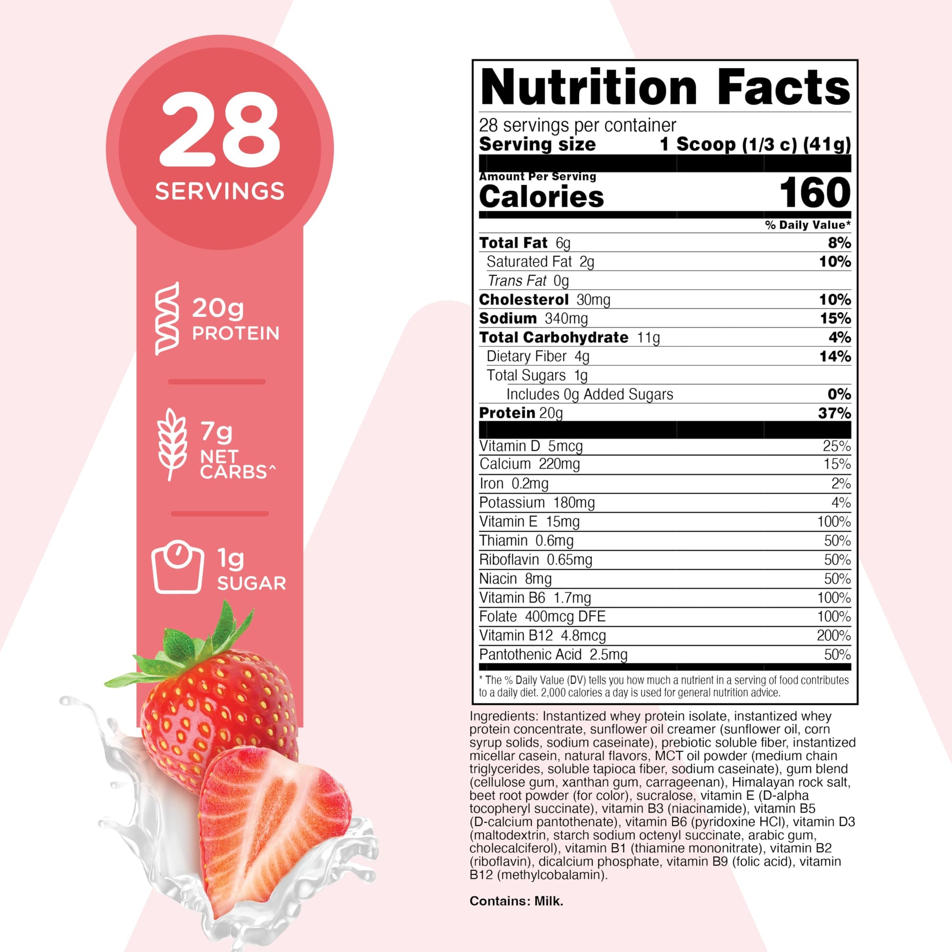 TransformHQ Meal Replacement Shake Powder 28 Servings (Strawberry & Cream) - Gluten Free, Non-GMO