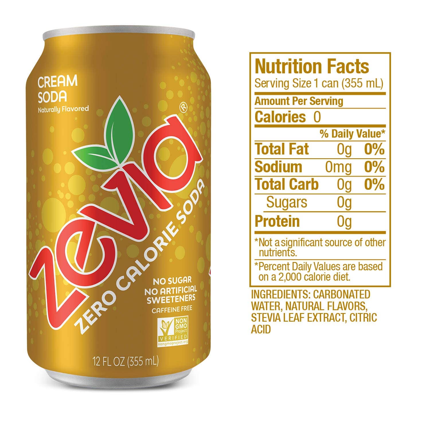 Zevia Zero Calorie Soda, Cream Soda, 12 Fl Oz Cans (Pack of 24)