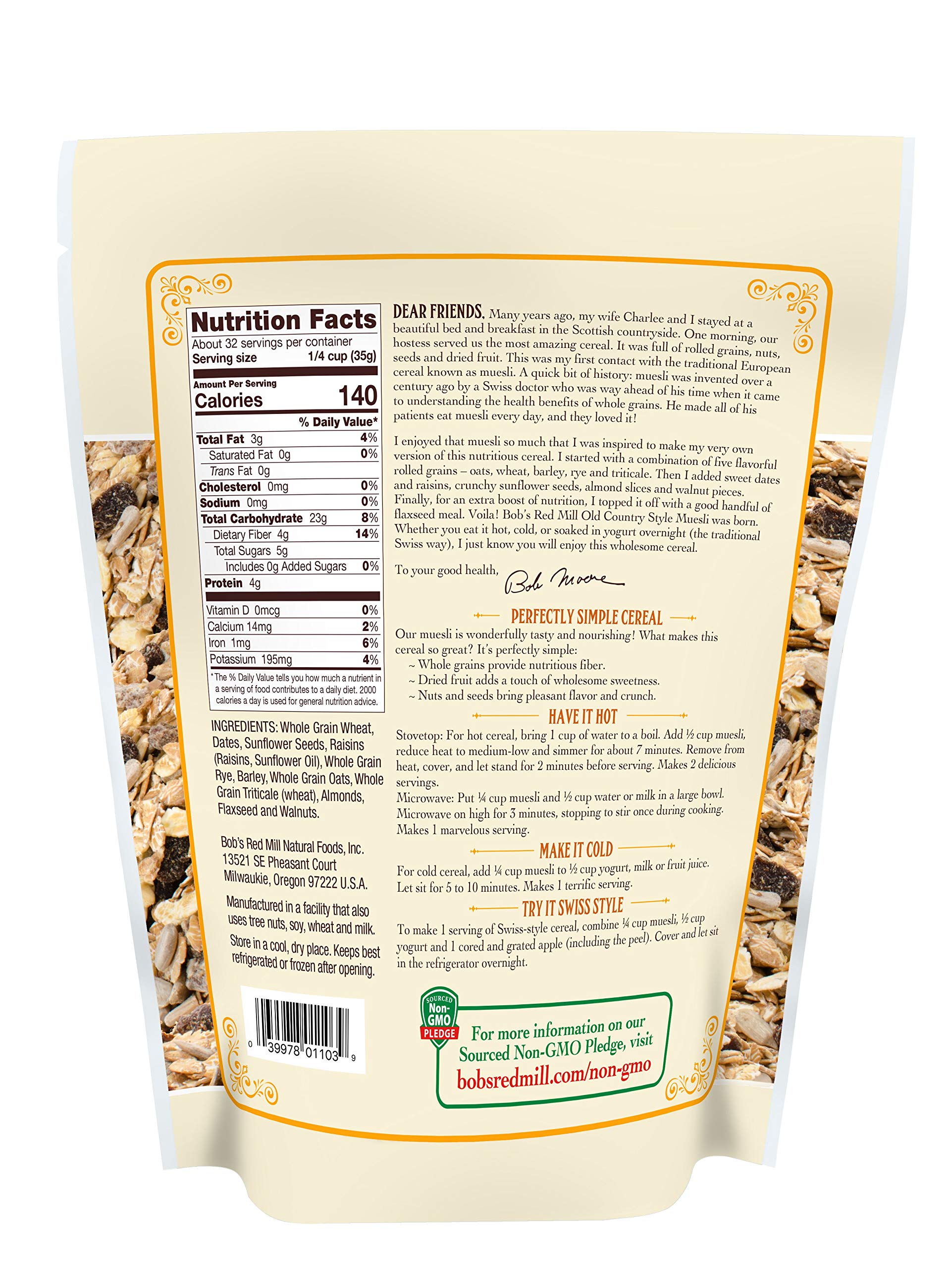 Bobs Red Mill Resealable Old Country Style Muesli Cereal, 40 Ounce (Pack of 4)