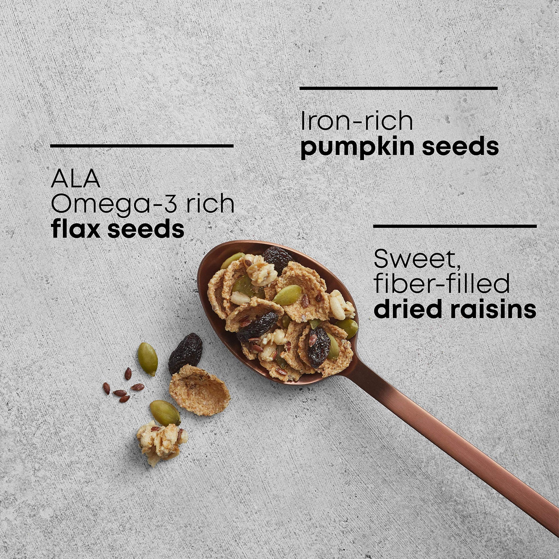 Breakfast time just got better - and crunchier. Fill your bowl with this Pumpkin Raisin Crunch cereal to reveal the delicious taste of Omega-3 rich flax seeds, fiber-filled raisins and iron-rich pumpkin seeds. The scrumptious taste, combined with the hearty crunch fills you up and offers you the energy you need to tackle the day. Each serving fuels your body with 6g of protein and 8g of fiber, not to mention organic ingredients that are good for you.