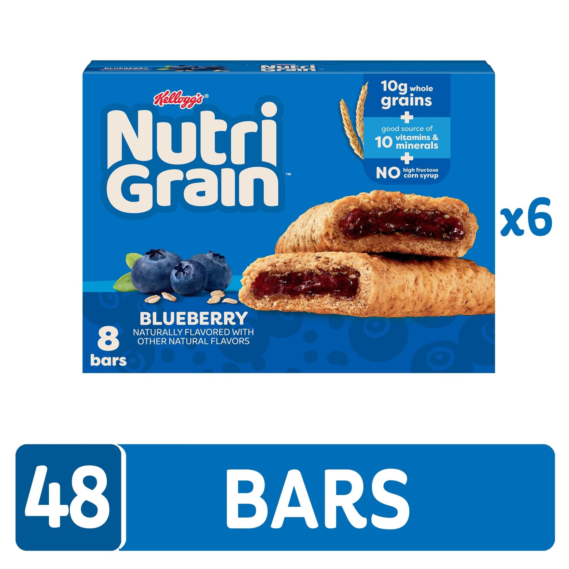 Nutri-Grain Soft Baked Breakfast Bars, Kids Snacks, Whole Grain, Blueberry (6 Boxes, 48 Count)