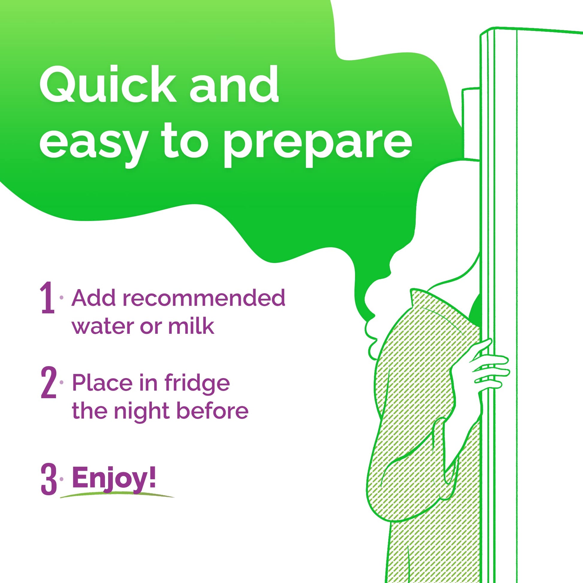 Q: How do I prepare the overnight oats?A: To prepare, simply add your favorite plant-based or dairy milk to the overnight oats packet, mix, and let it chill in the fridge overnight. In the morning, you’ll have a delicious and ready-to-eat breakfast.
