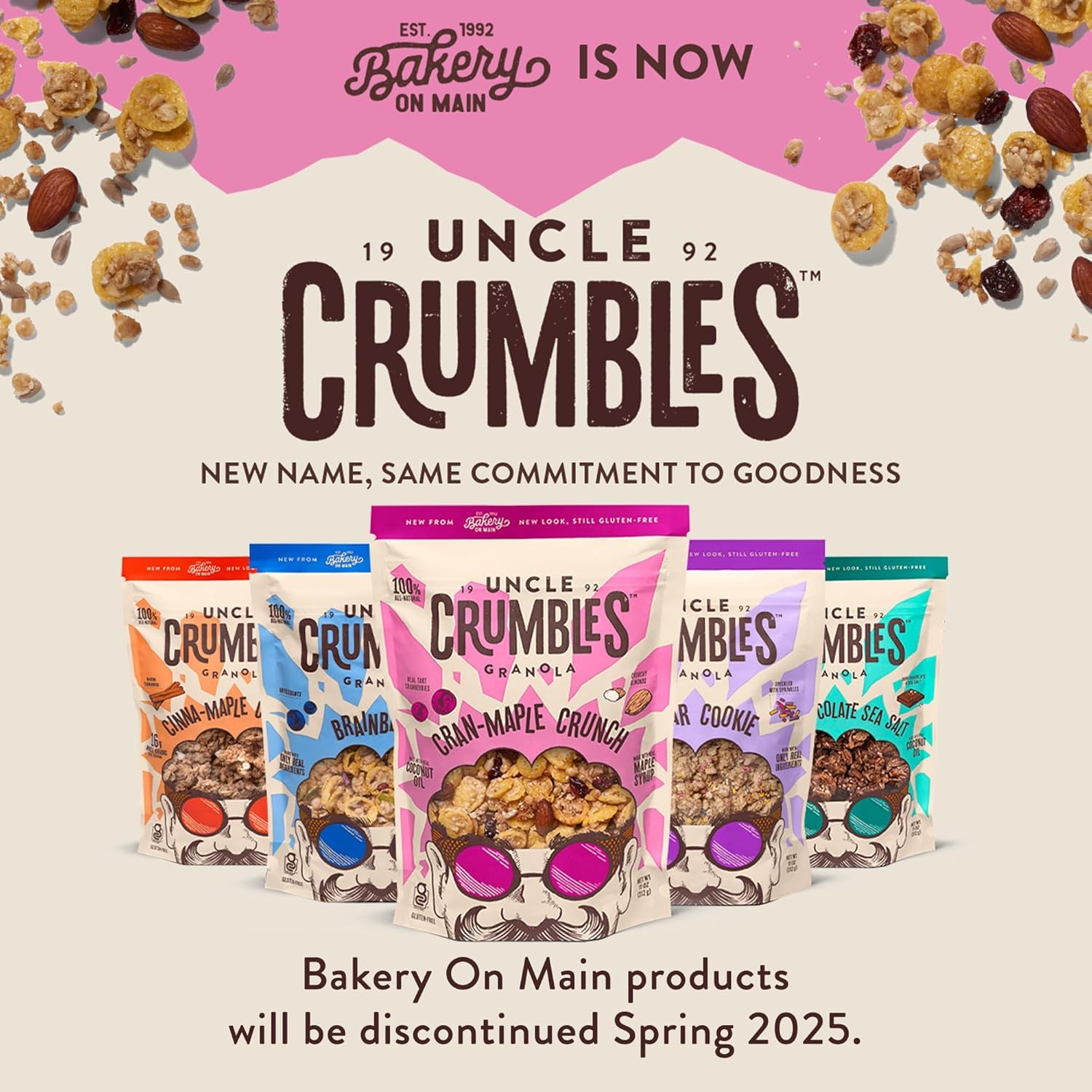 Q: How can I use Bakery On Main Granola in my meals?A: You can enjoy Bakery On Main Granola as a hearty snack, or use it as a topping for yogurt, acai bowls, or ice cream to add a delightful crunch and flavor.